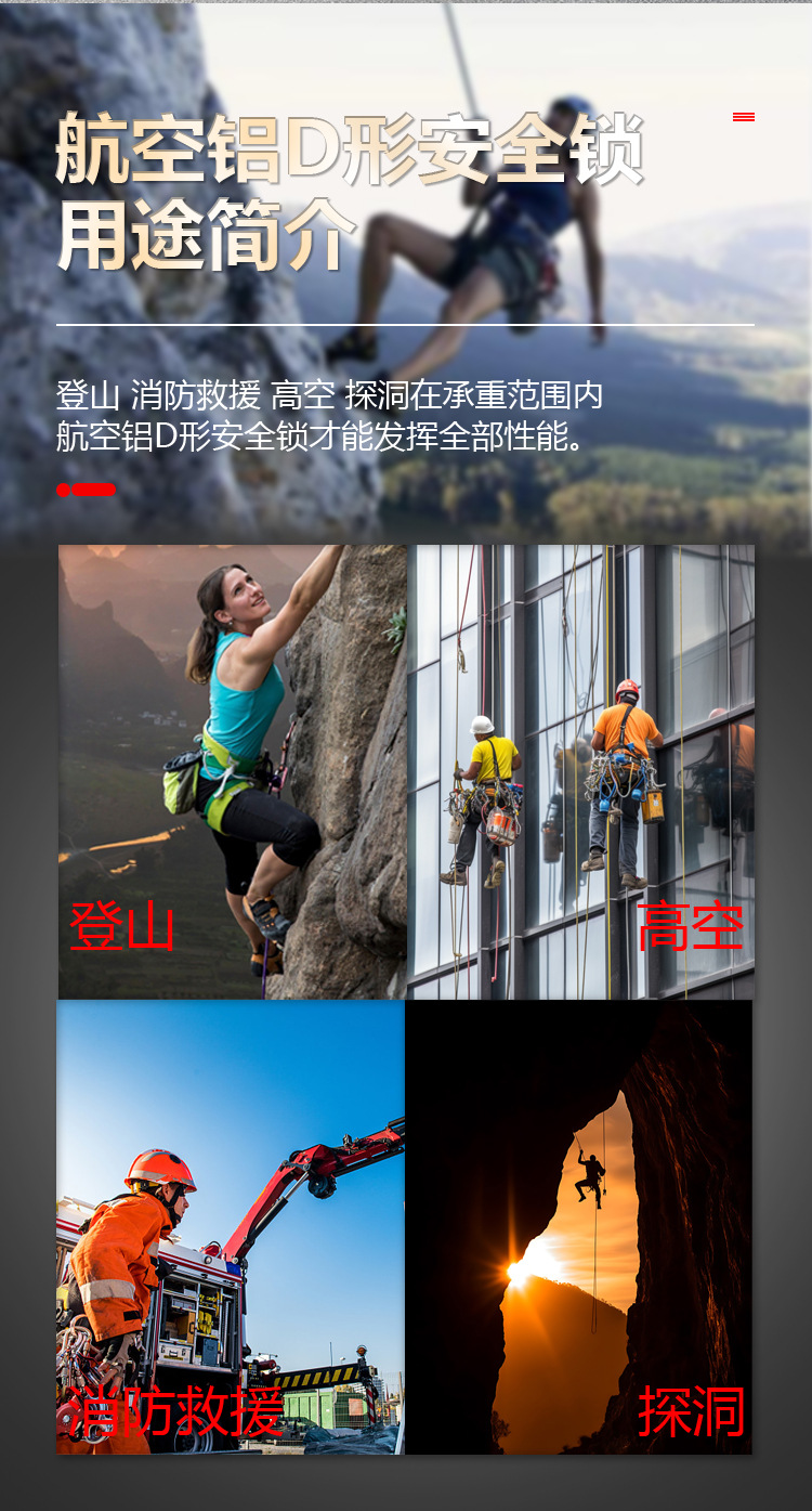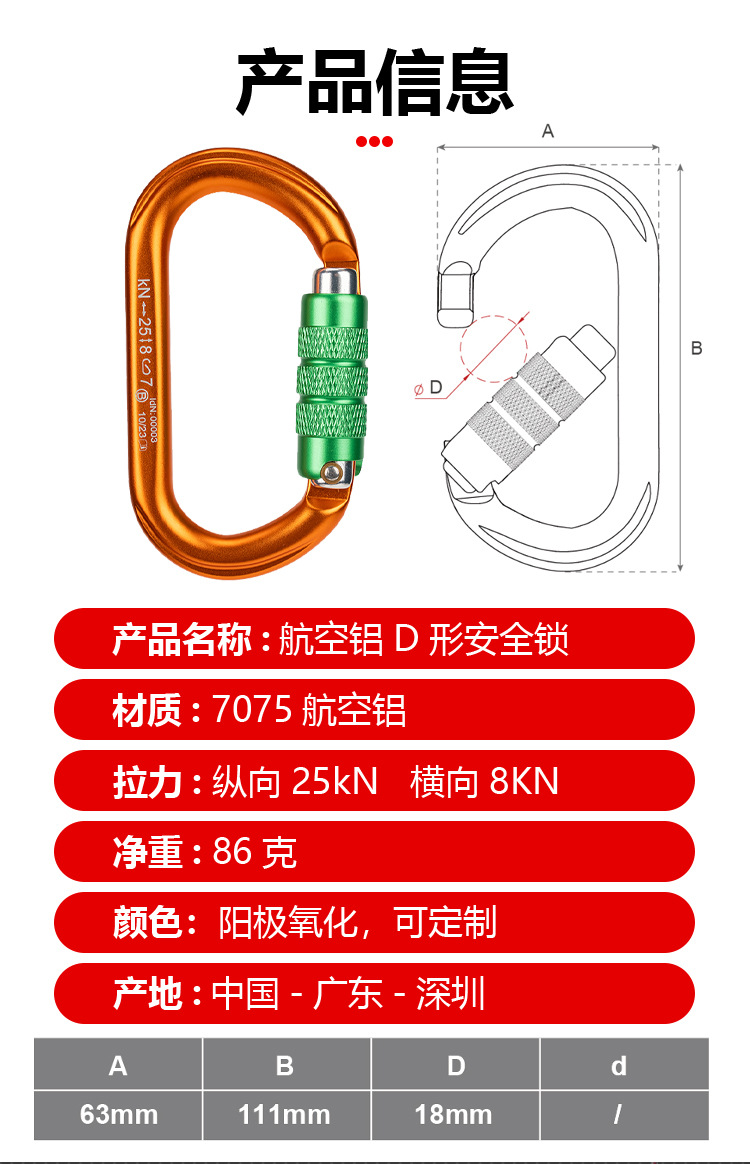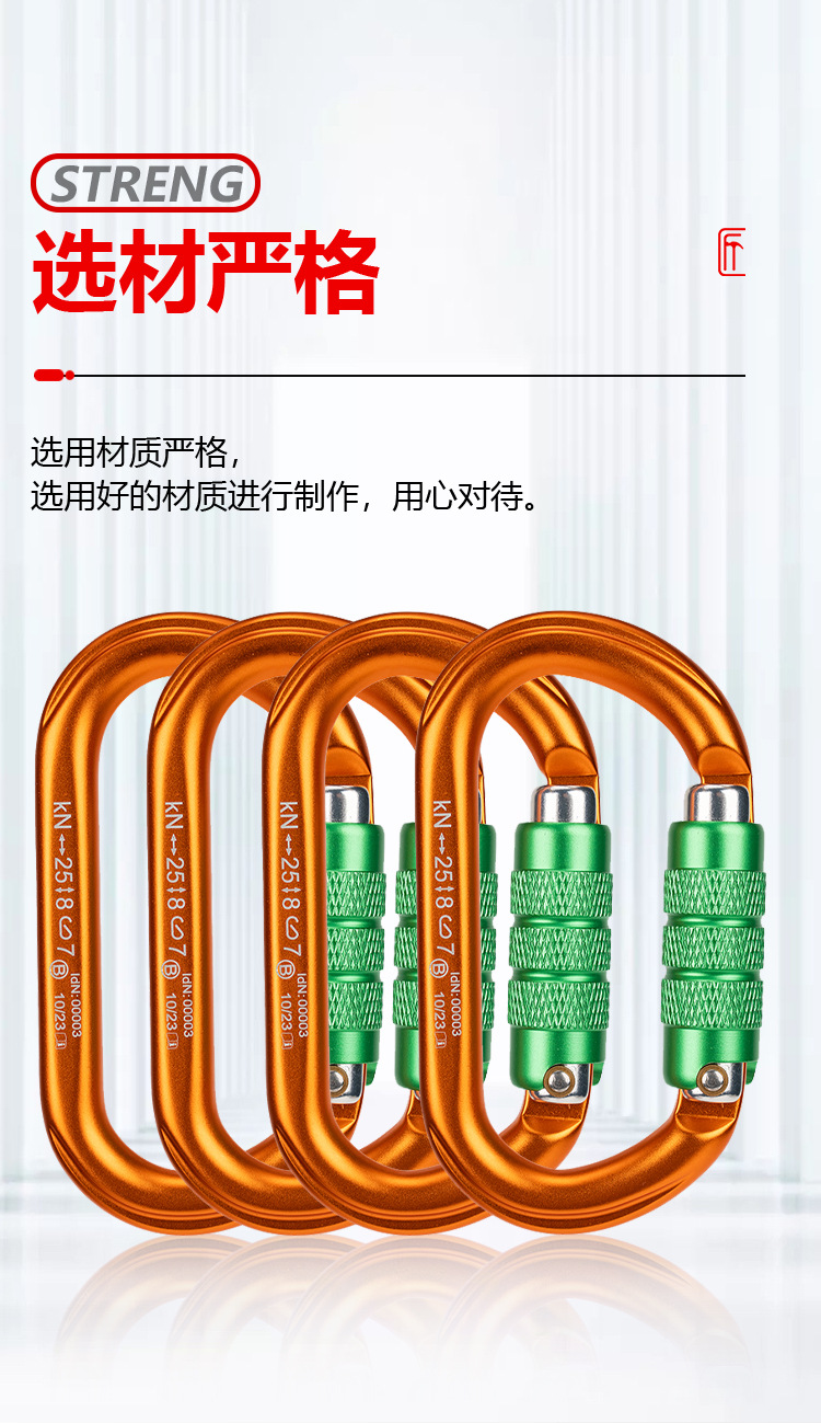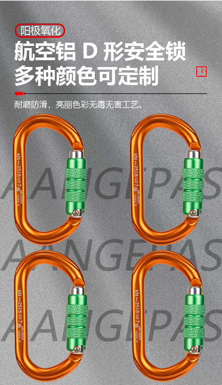 7075 알루미늄 합금 O형 메인락 등산용 잠금장치, 등반용 하중지지 후크, 자동잠금 야외 장비 안전 잠금 버클