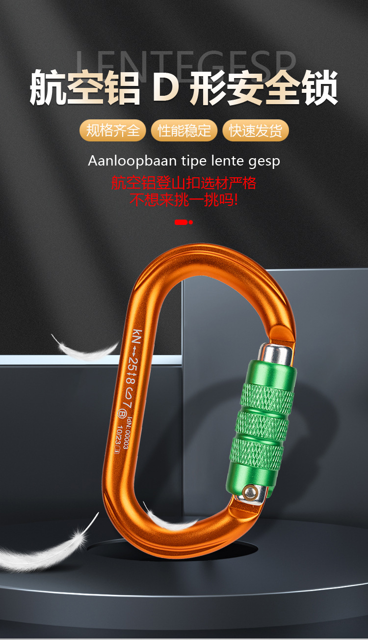 7075 알루미늄 합금 O형 메인락 등산용 잠금장치, 등반용 하중지지 후크, 자동잠금 야외 장비 안전 잠금 버클스토어 가기