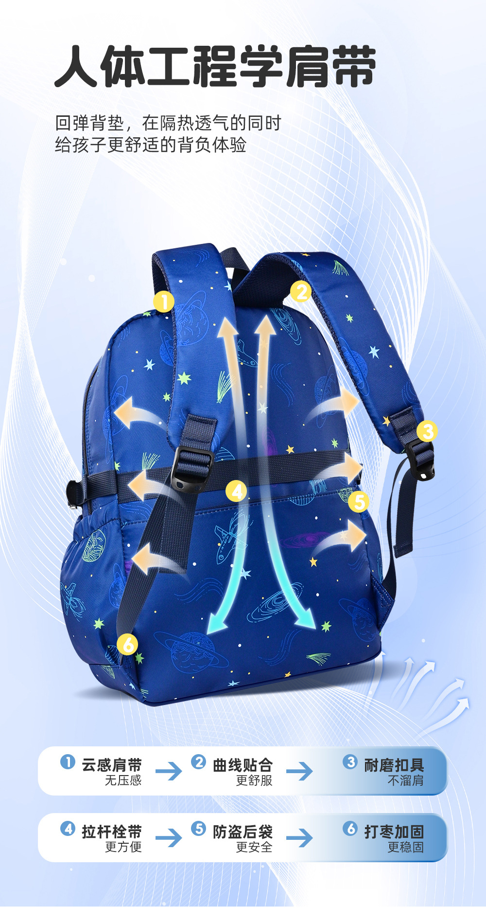 크로스보더 2026년 신제품 초등학생용 별빛 하늘 가방, 3~6학년 어린이용 경량 남녀공용 책가방