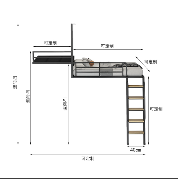 • βγγγγδ 철제 고가 해먹 매트 하부 검정색 상부 침대 왼쪽 사다리 βγγγγδ