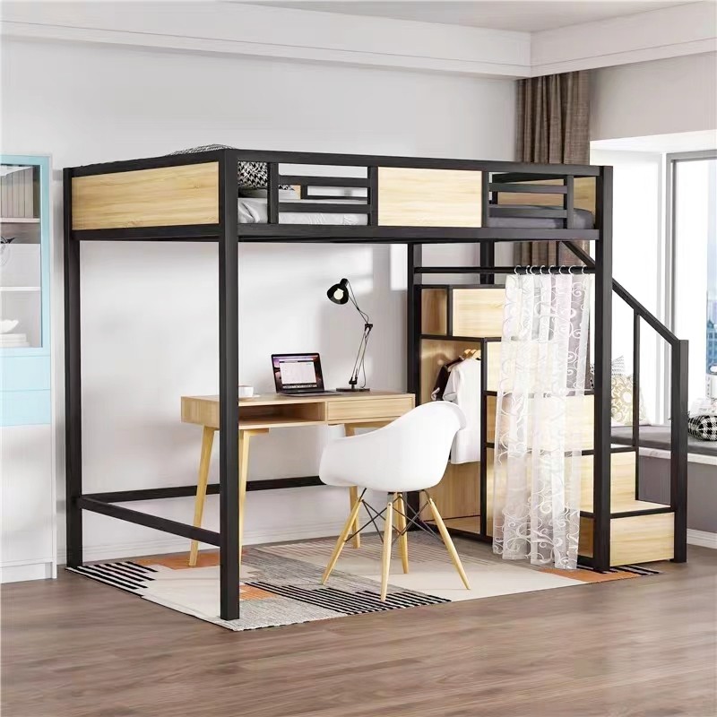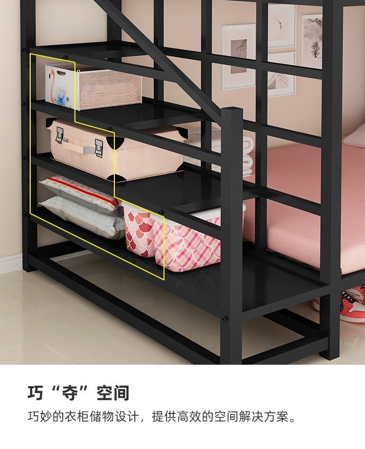 • βγγγγδ 철제 로프트 침대 매트 블랙 사다리 캐비닛 βγγγγδ