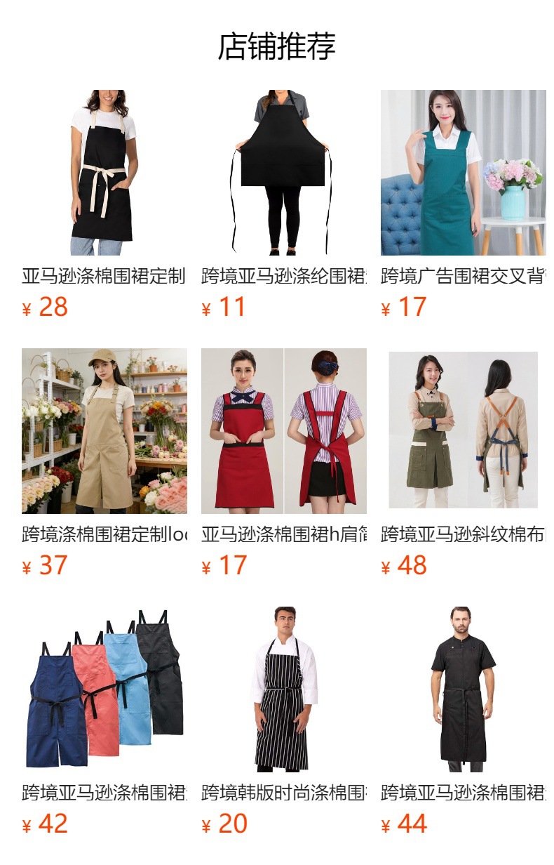 국경 간 아마존 폴리 에스테르 목화 앞치마 레스토랑 우유 차 가게 베이킹 카페 바베큐 작업복 앞치마 도매스토어 가기