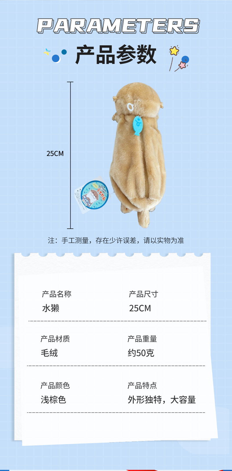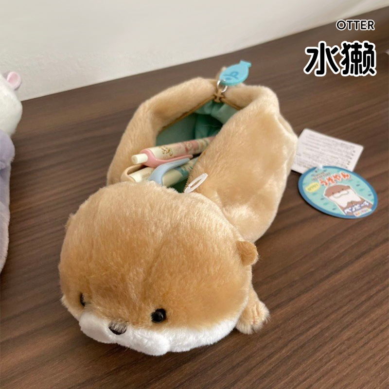 2024 새로운 귀여운 작은 수달 봉제 인형 하이 엔드 연필 가방 스타일 높은 색 가치 동물 저장 가방스토어 가기