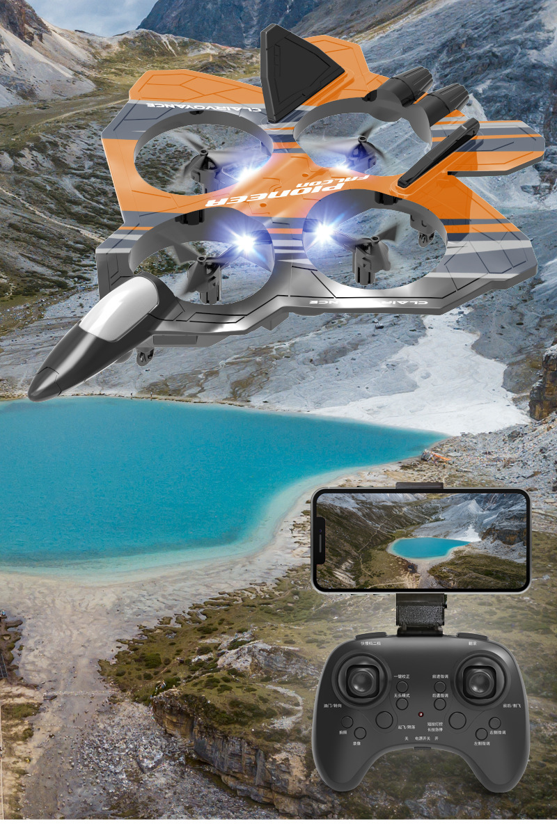 원격 제어 전투기 고정 높이 낙하 방지 폼 4축 드론은 WiFi 항공 사진 충전식 어린이 비행기 장난감을 가져갈 수 있습니다.