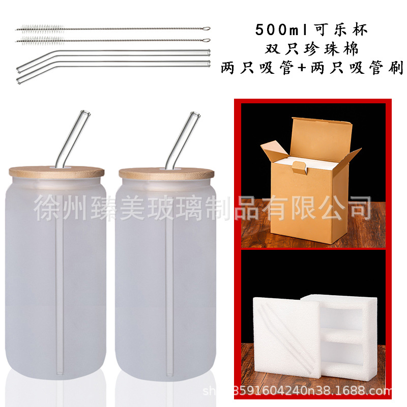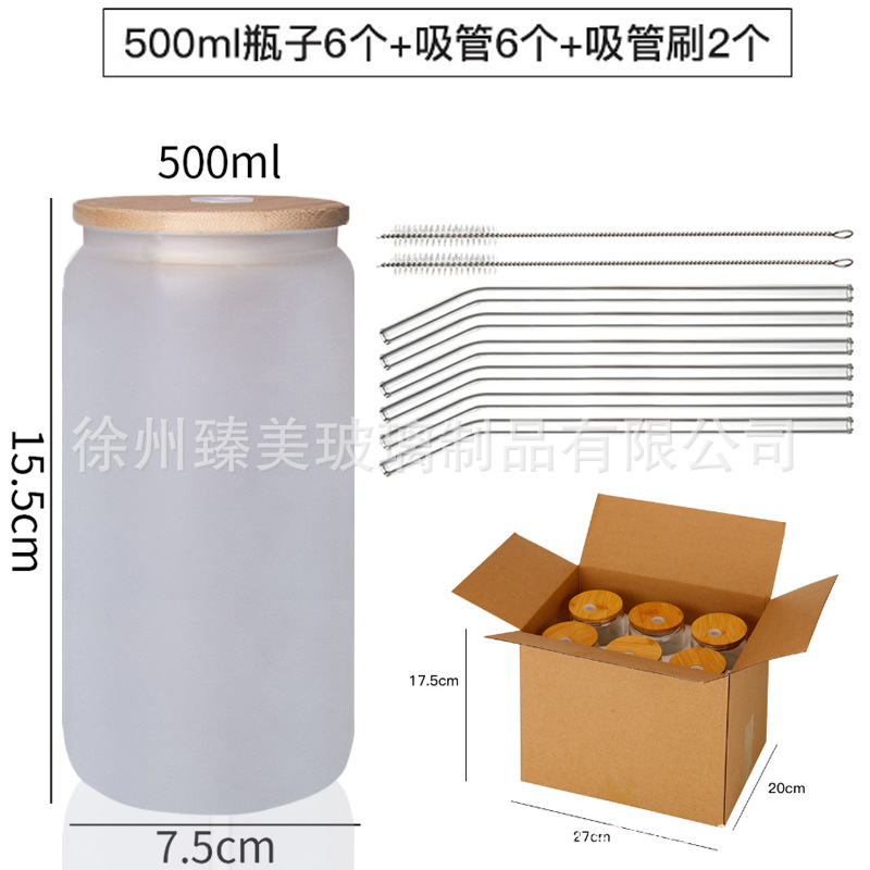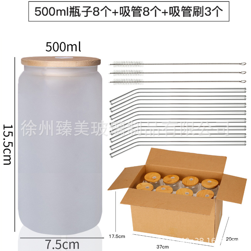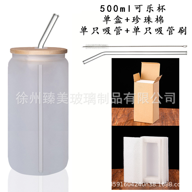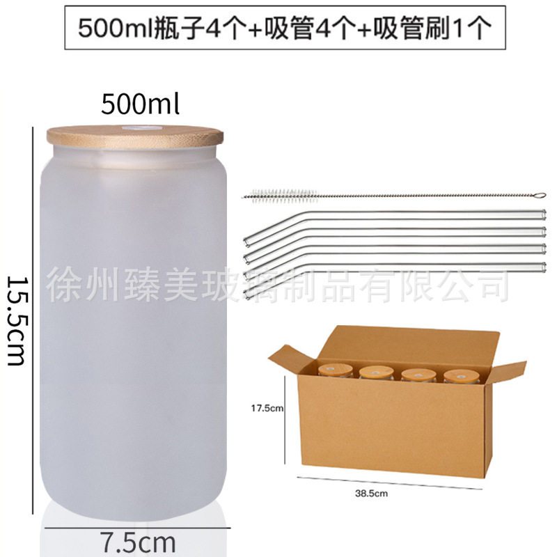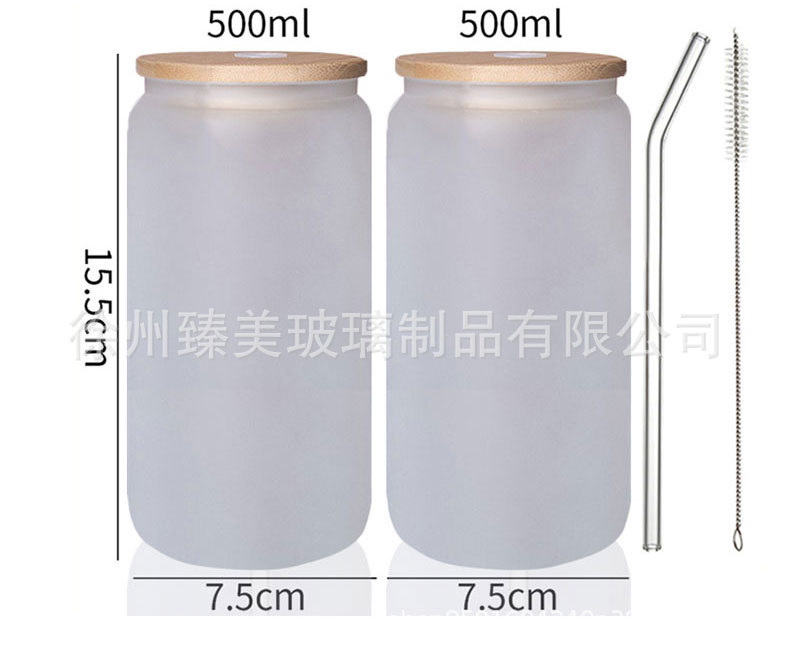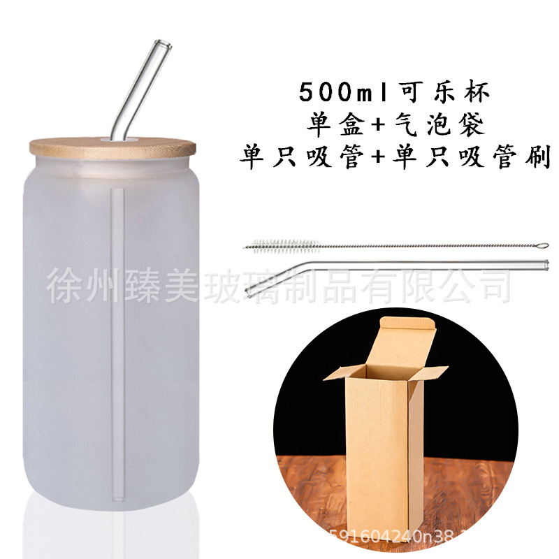 국경 간 아마존 550ml 유리 우유 차 커피 컵 높은 색상의 젖빛 유리 대나무 뚜껑 콜라 컵