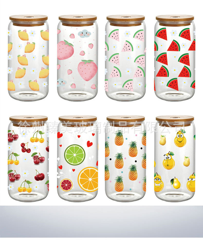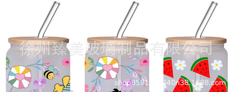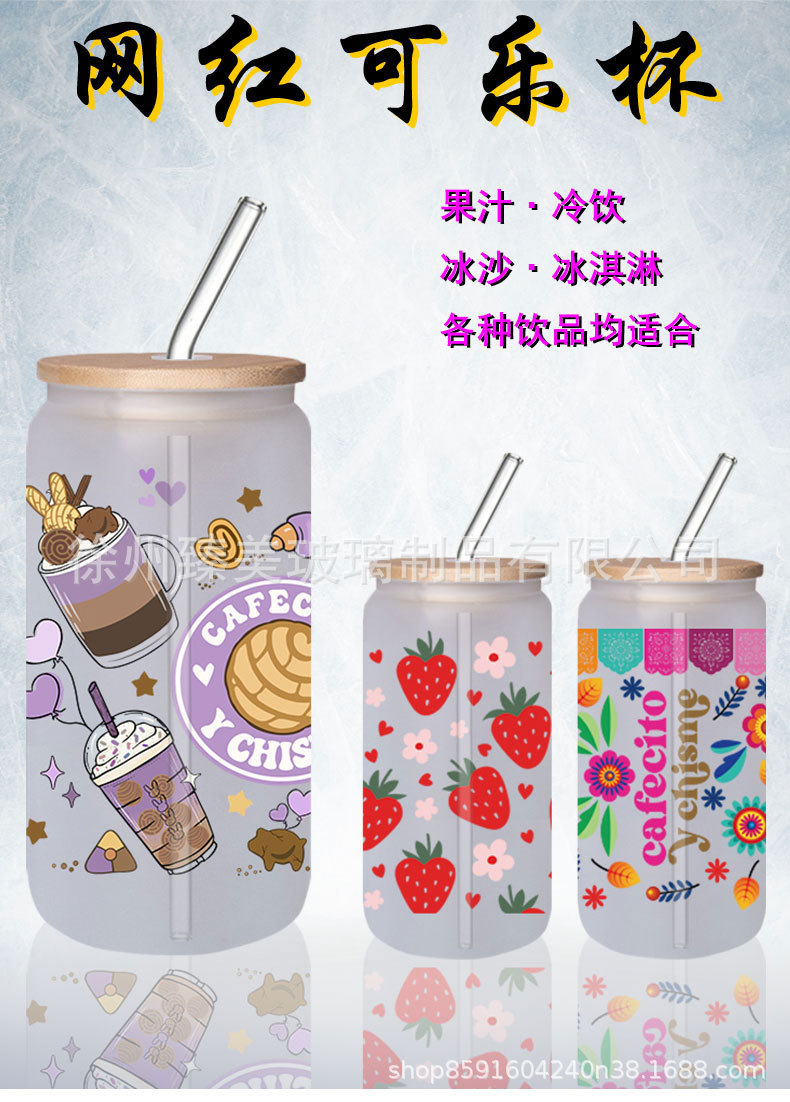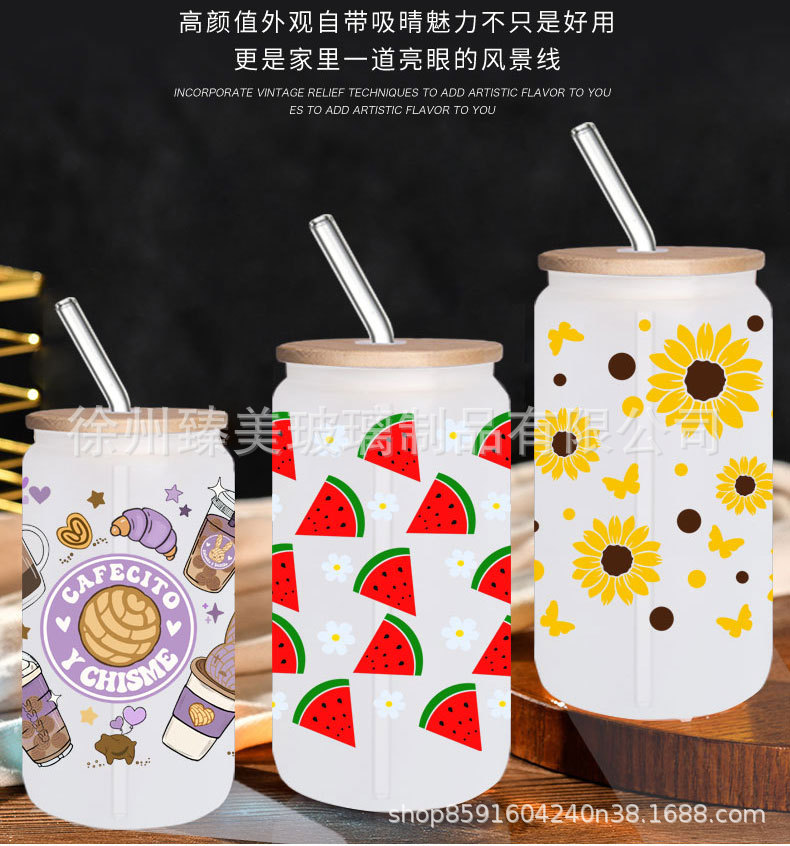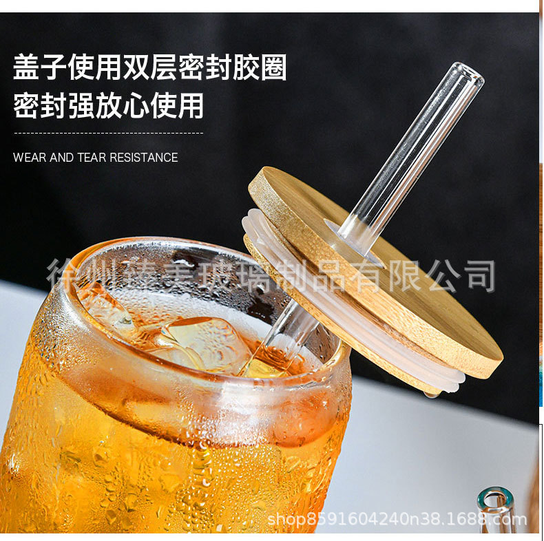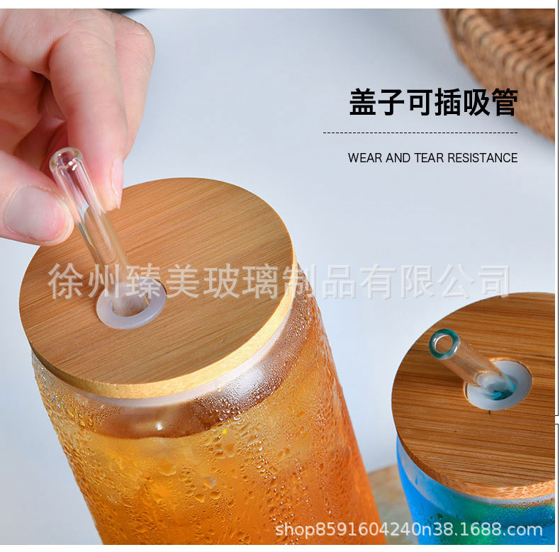 국경 간 아마존 550ml 유리 우유 차 커피 컵 높은 색상의 젖빛 유리 대나무 뚜껑 콜라 컵스토어 가기