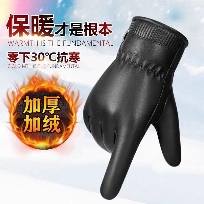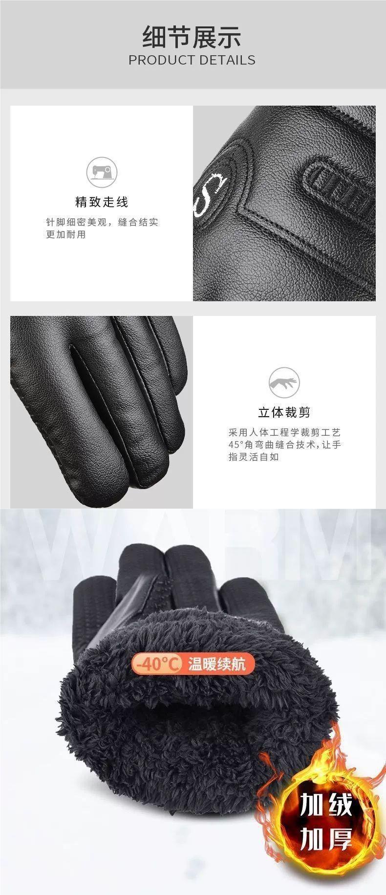 면 장갑 방풍 및 내한성 40 기모 두꺼운 가죽 장갑 남성용 겨울 야외 따뜻한 사이클링 배터리 자동차 PU 도매스토어 가기