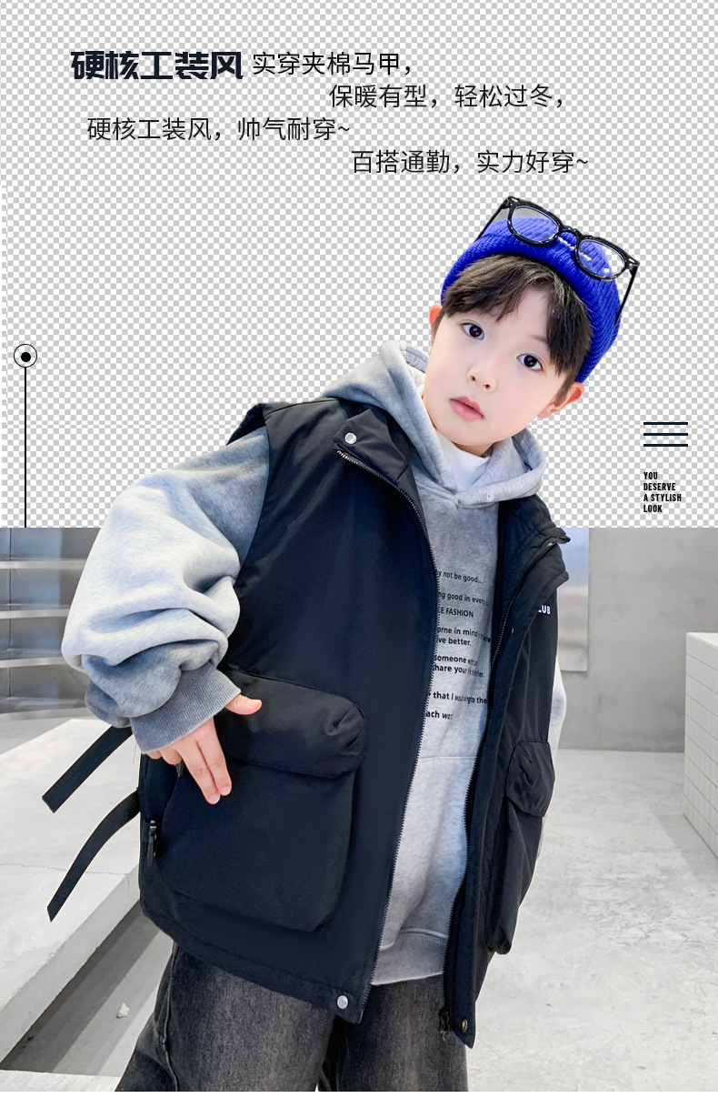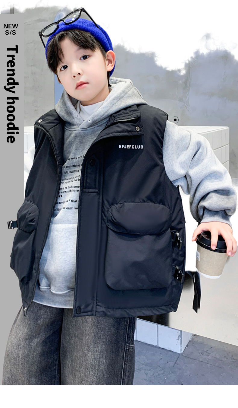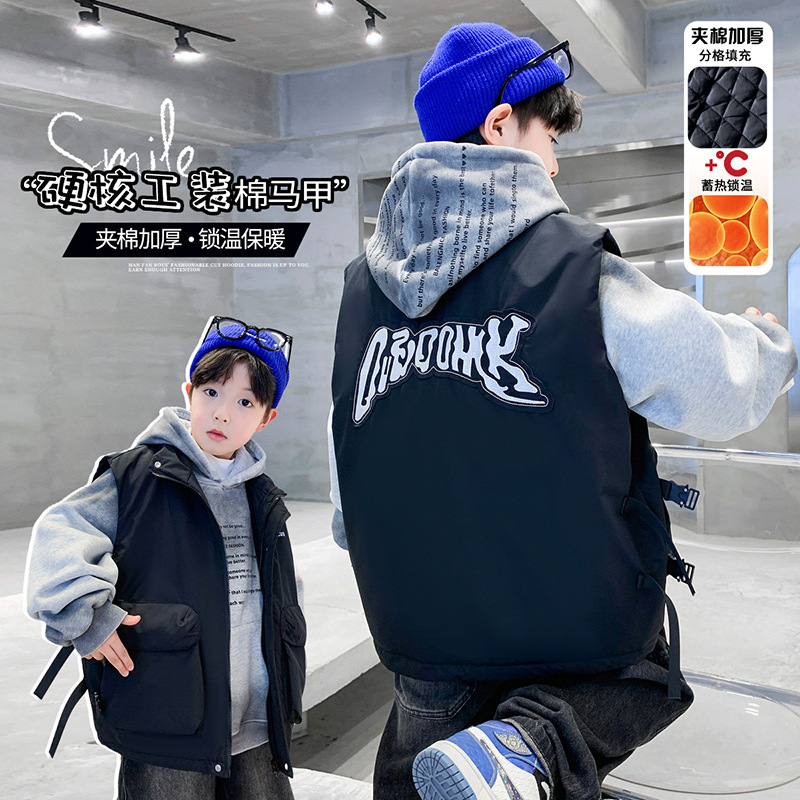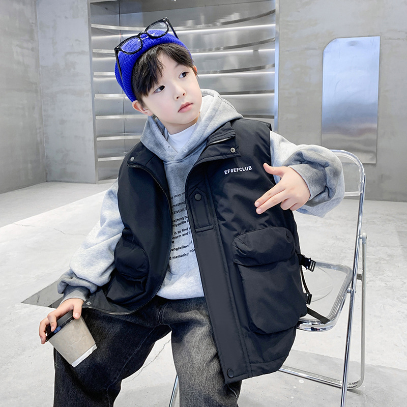 겨울 중다 소년 면화 조끼 겨울 새로운 어린이 착용 어린이 조끼 소년 두껍게 입는다 유행 큰 주머니스토어 가기