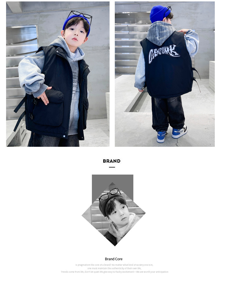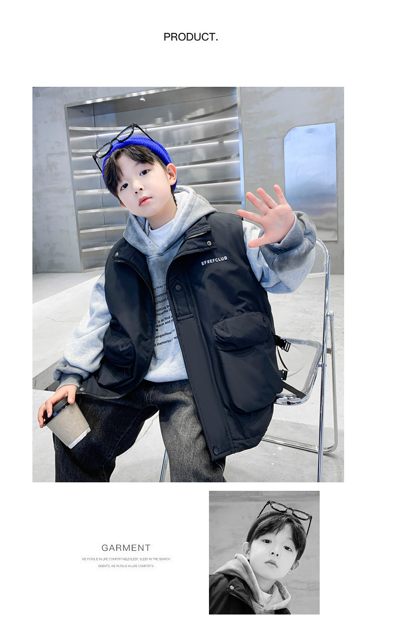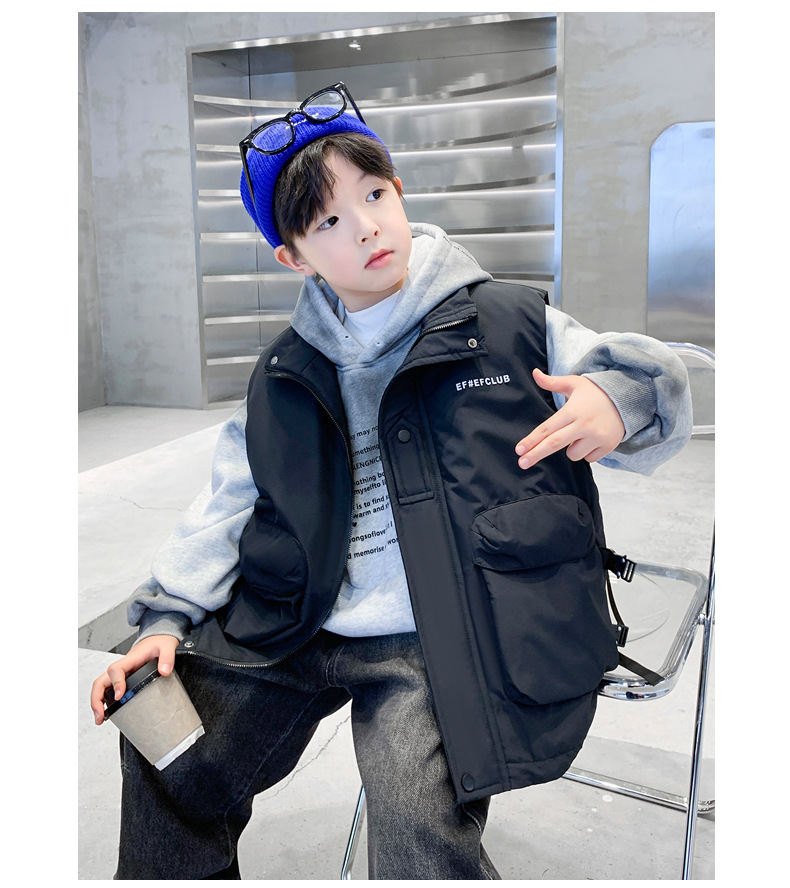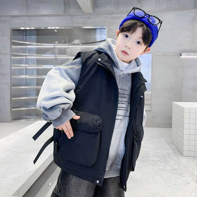 겨울 중다 소년 면화 조끼 겨울 새로운 어린이 착용 어린이 조끼 소년 두껍게 입는다 유행 큰 주머니
