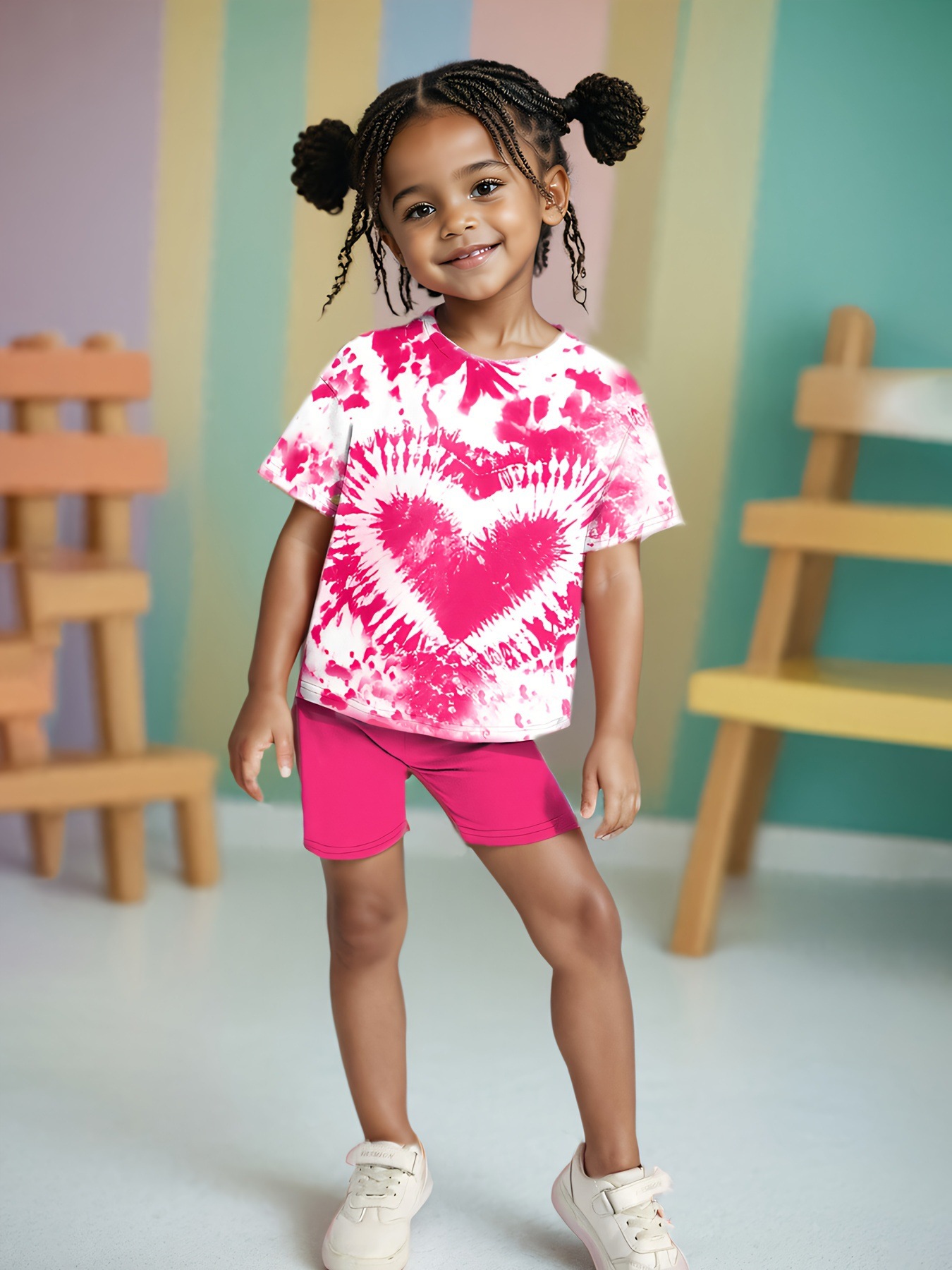 국경 간 대외 무역 INS 소녀 여름 착용 스포츠 하트 모양의 넥타이 염색 어깨 모양의 인쇄 티셔츠 반팔 레깅스 캐주얼 세트스토어 가기