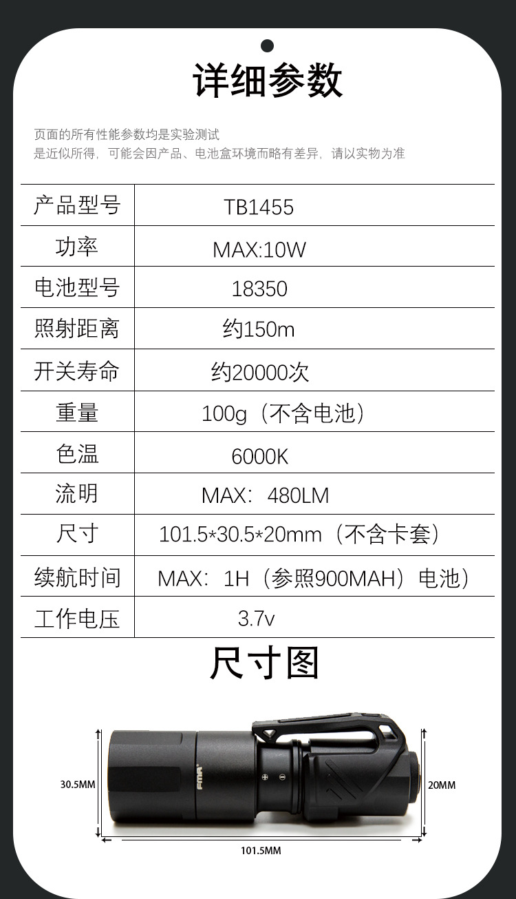 FMA 야외 전술 캠핑 구조 짧은 LED 조명 손전등 TB1455