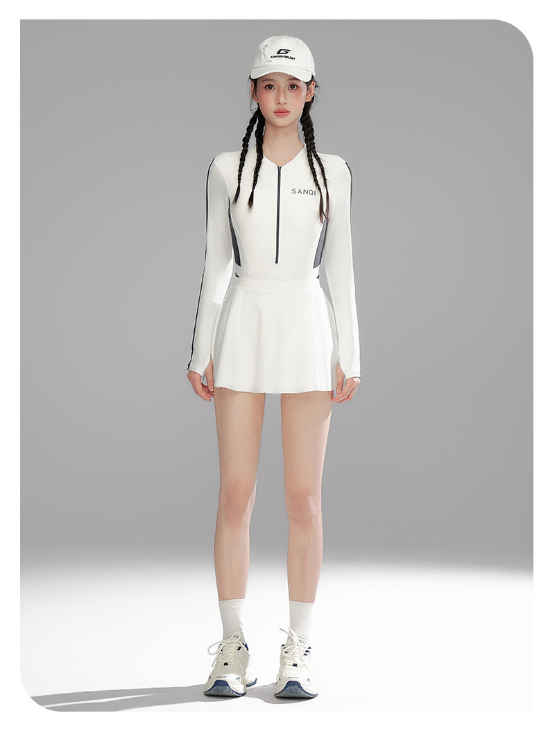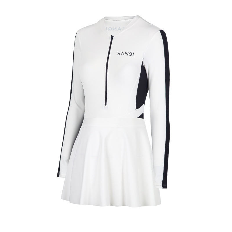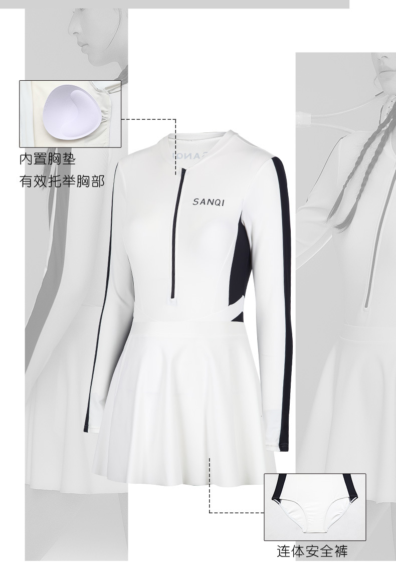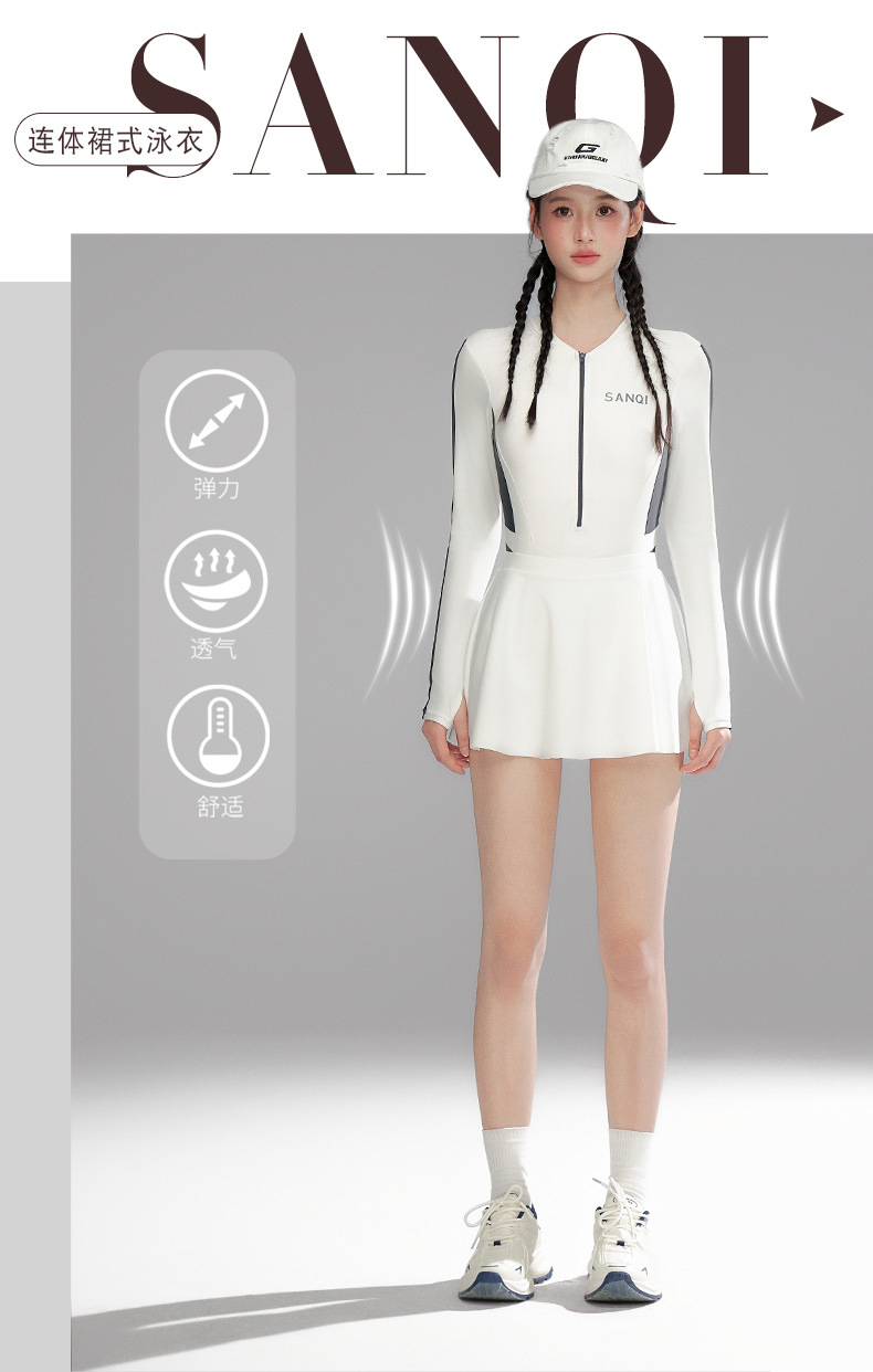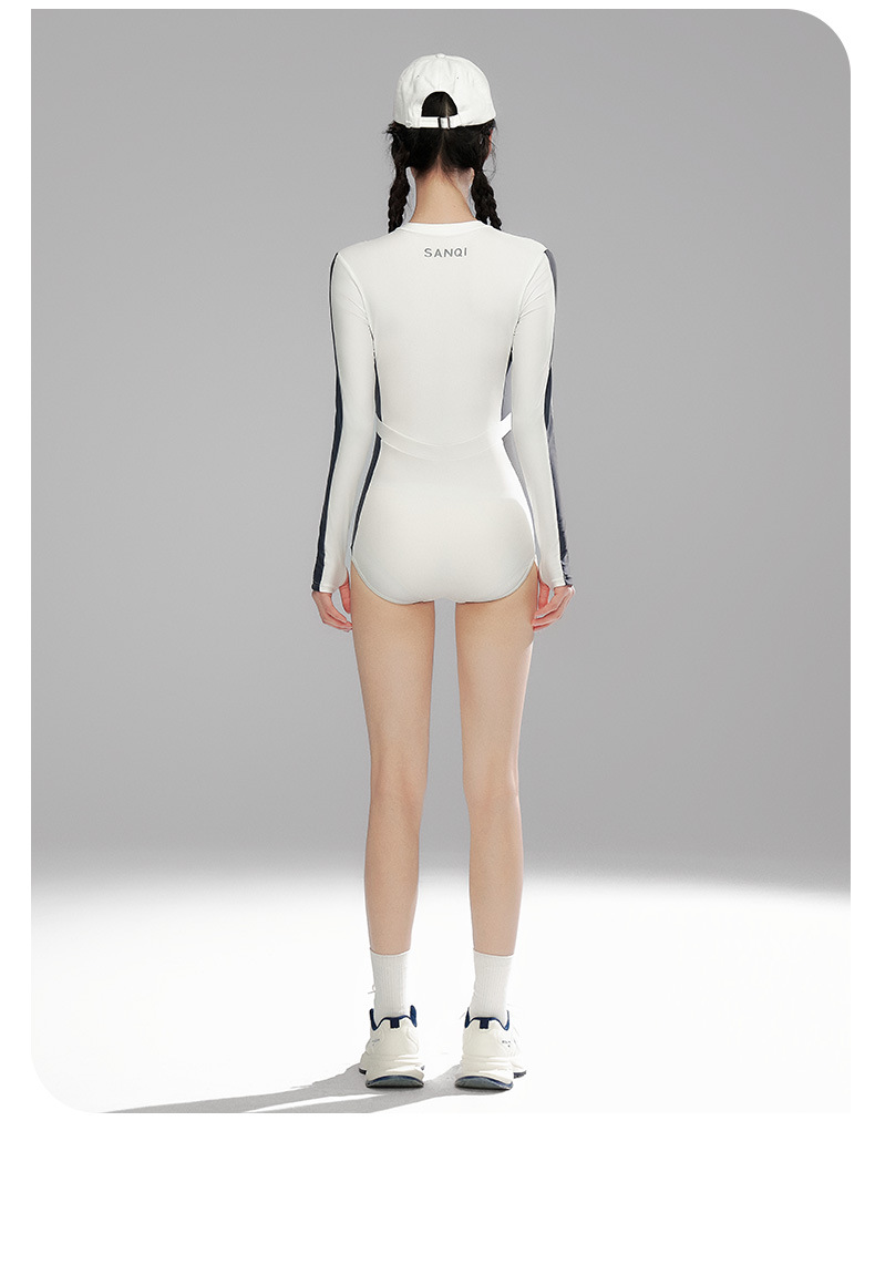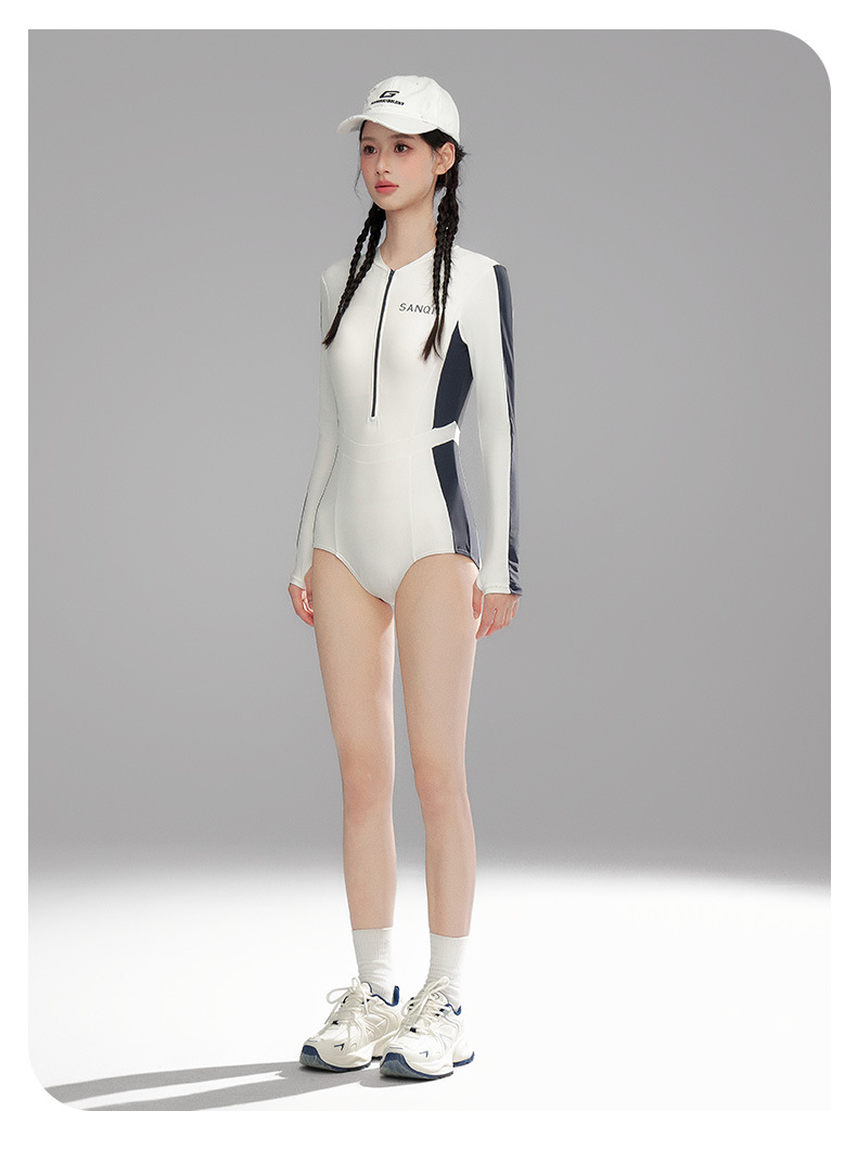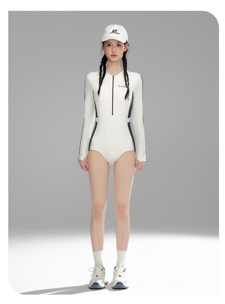 Sanqi 수영복 여성용 긴팔 선 스크린 2024 새로운 결합 된 보수적 인 하이 엔드 벨리 커버 슬리밍 온천 수영복스토어 가기