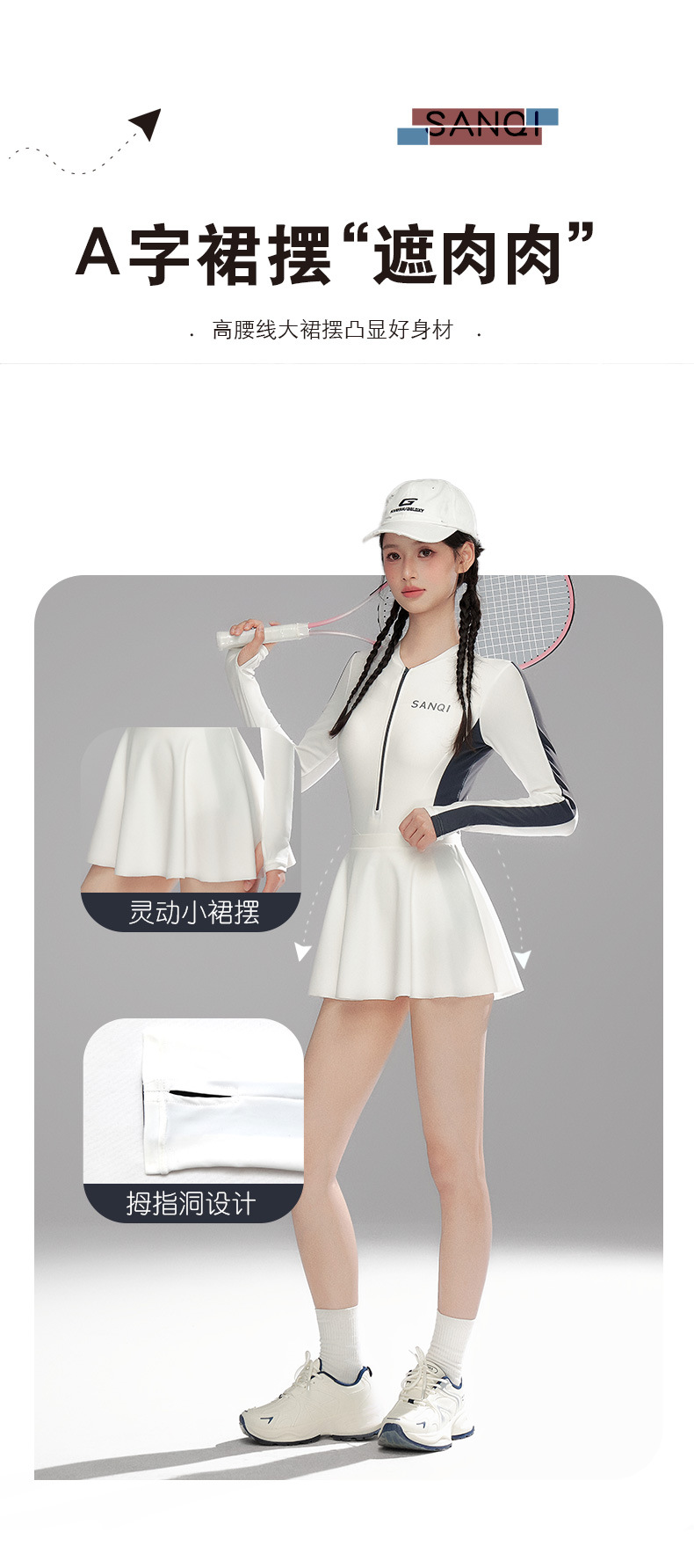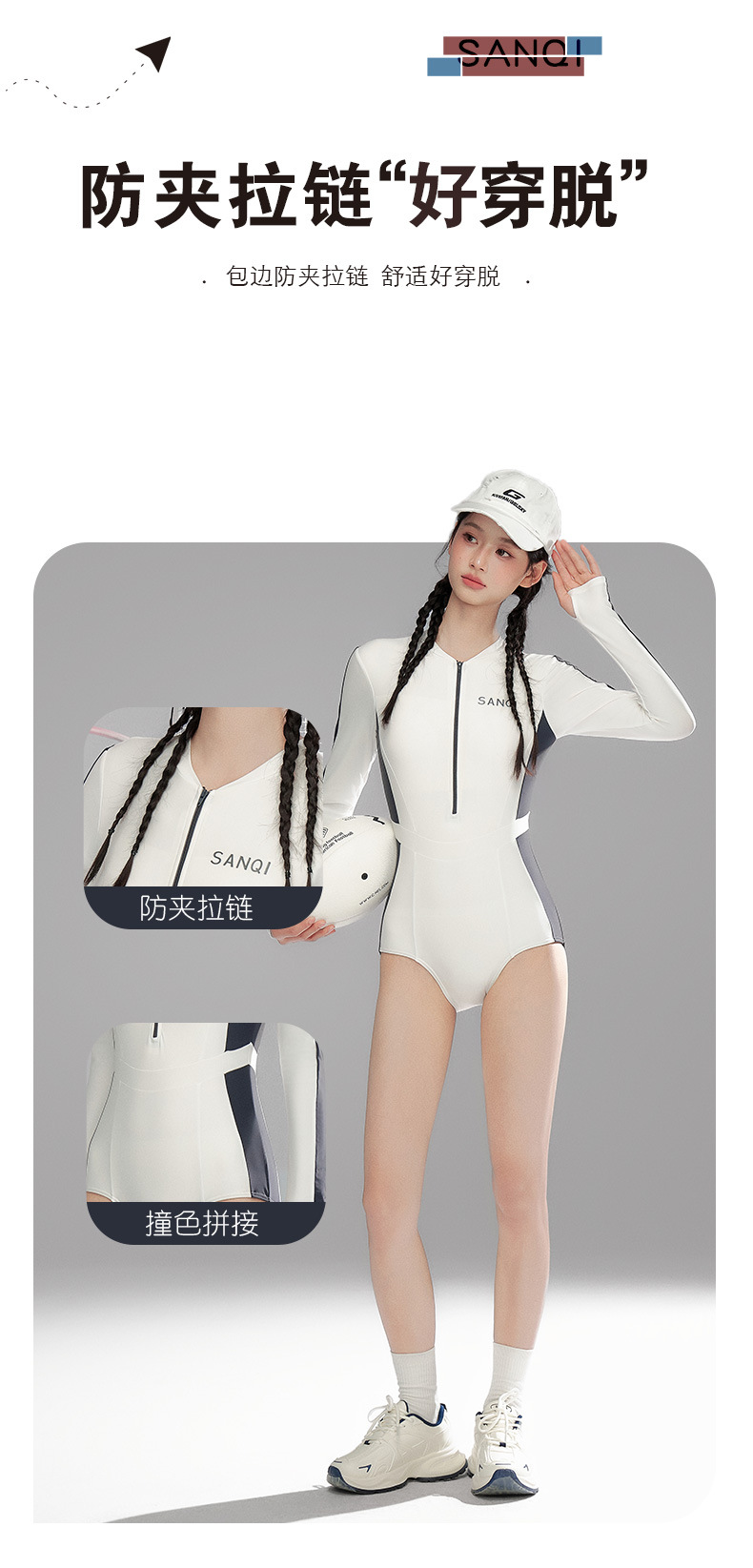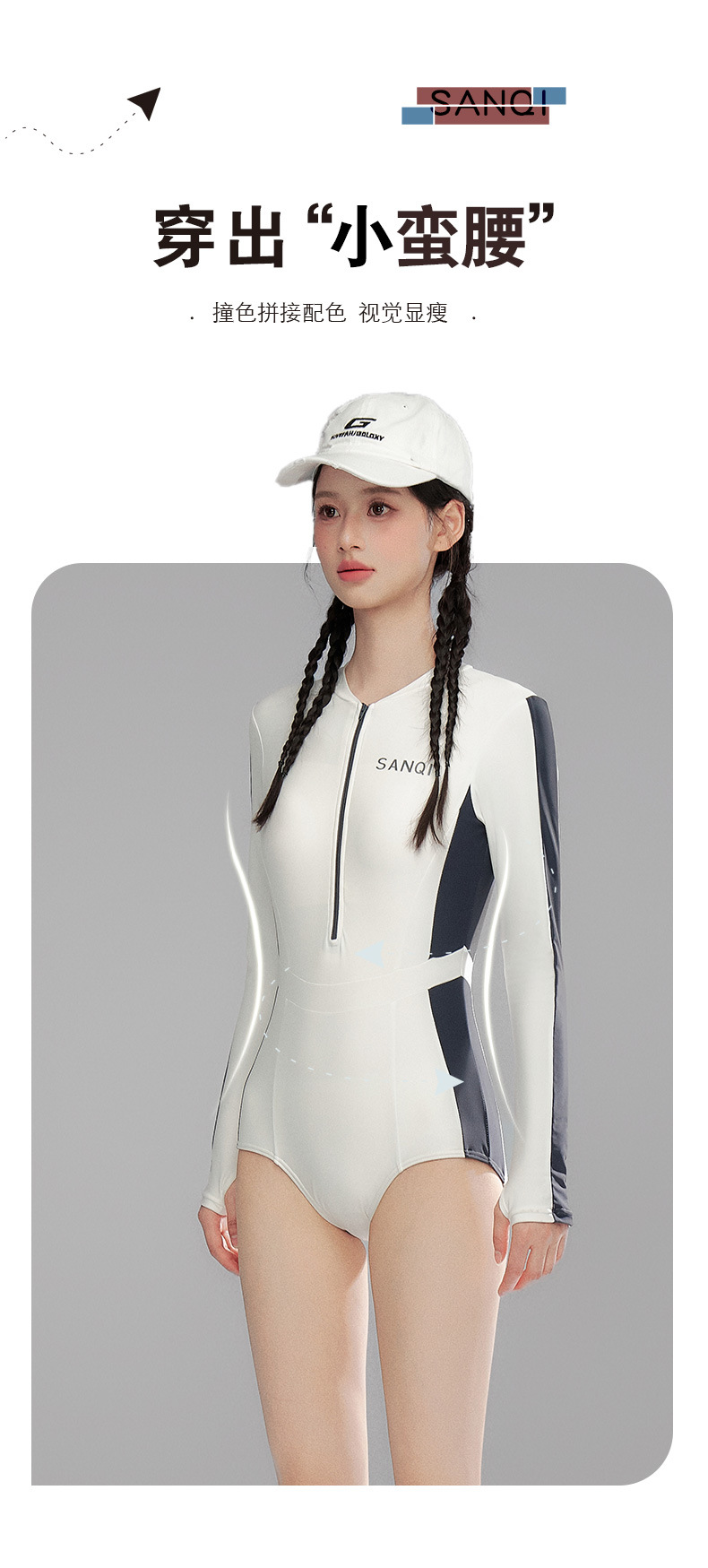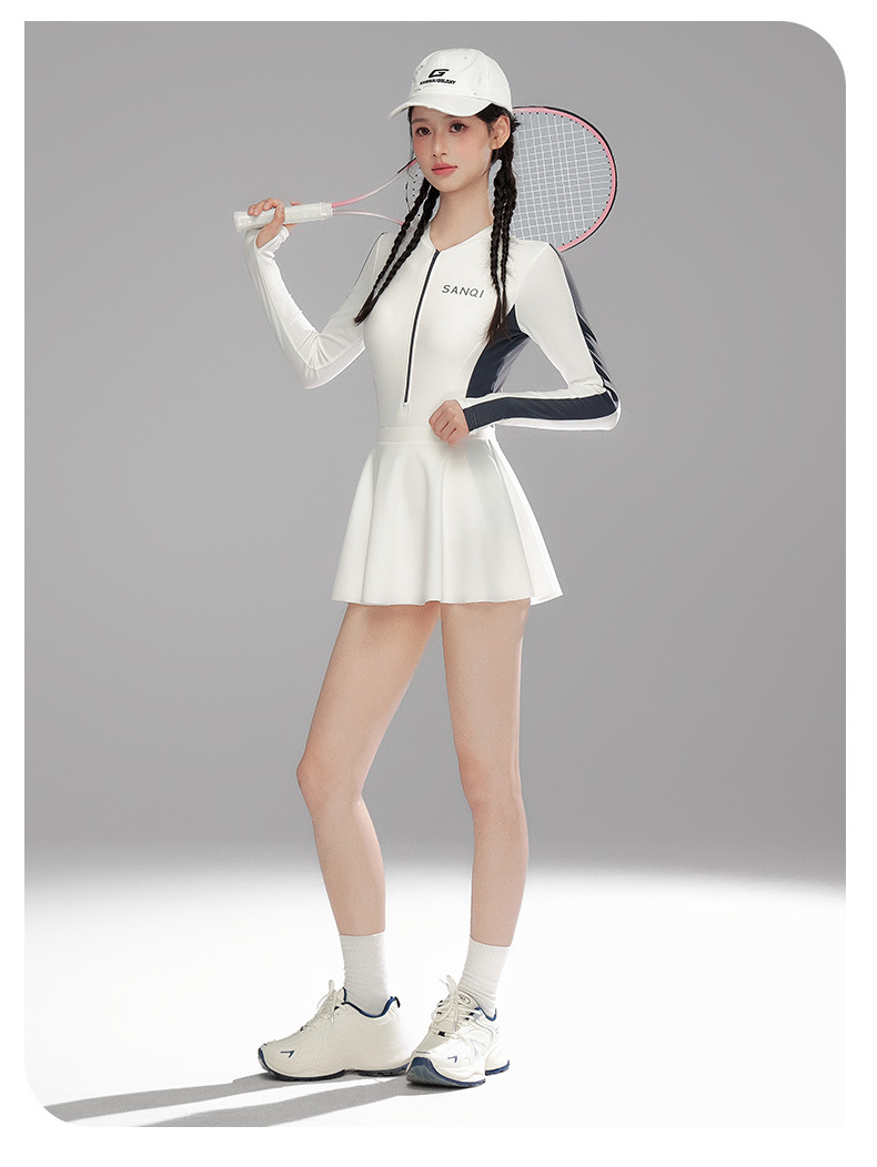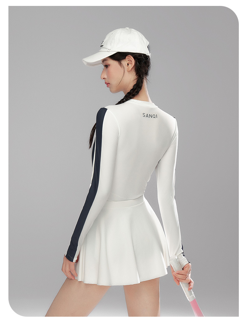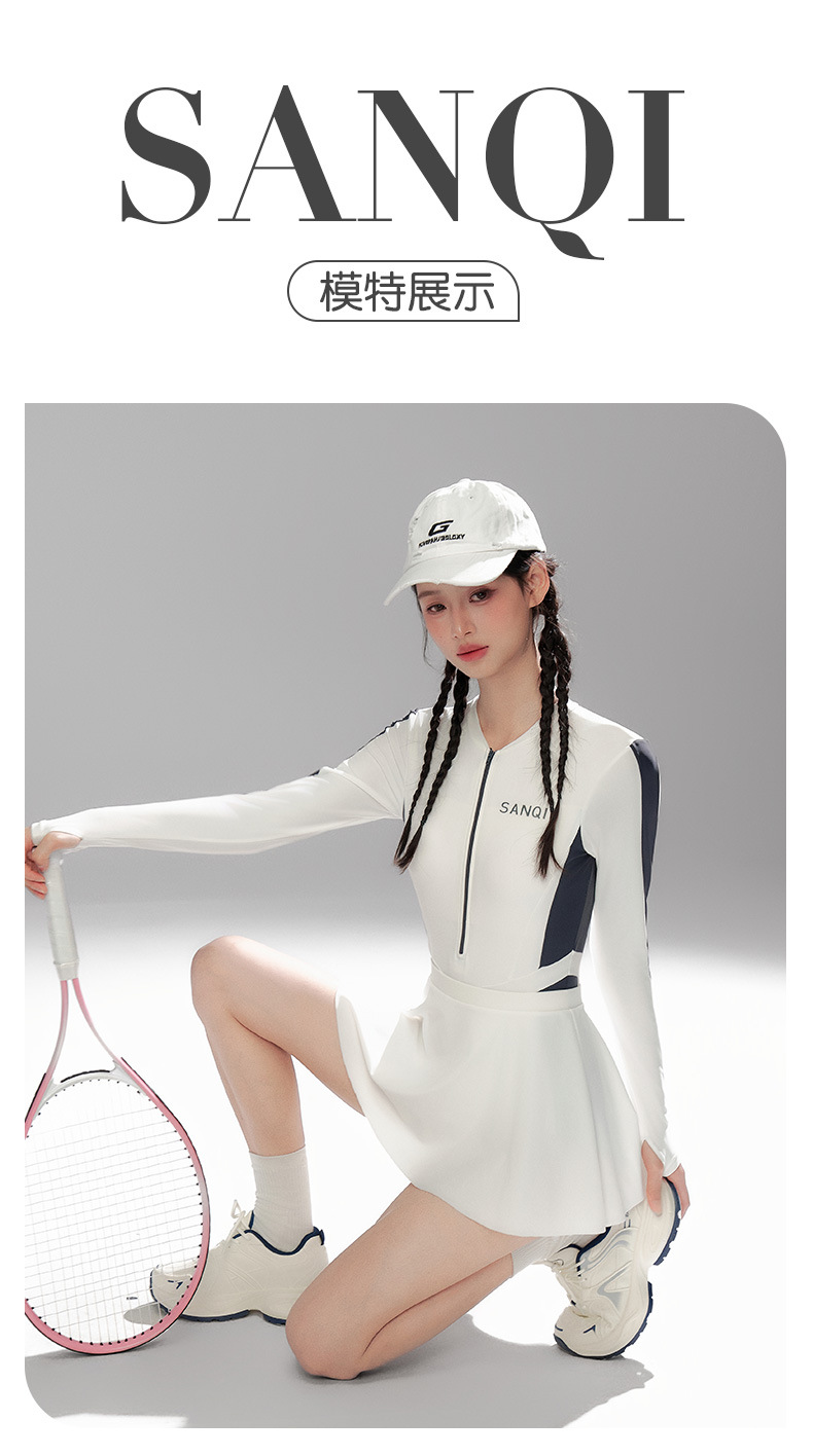 Sanqi 수영복 여성용 긴팔 선 스크린 2024 새로운 결합 된 보수적 인 하이 엔드 벨리 커버 슬리밍 온천 수영복스토어 가기