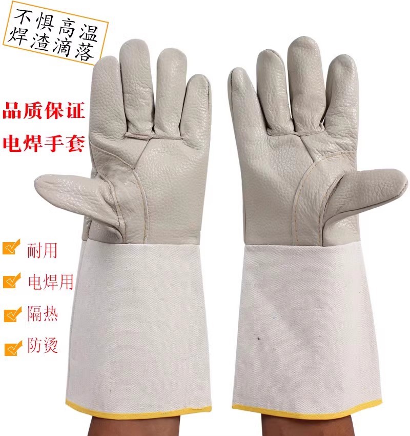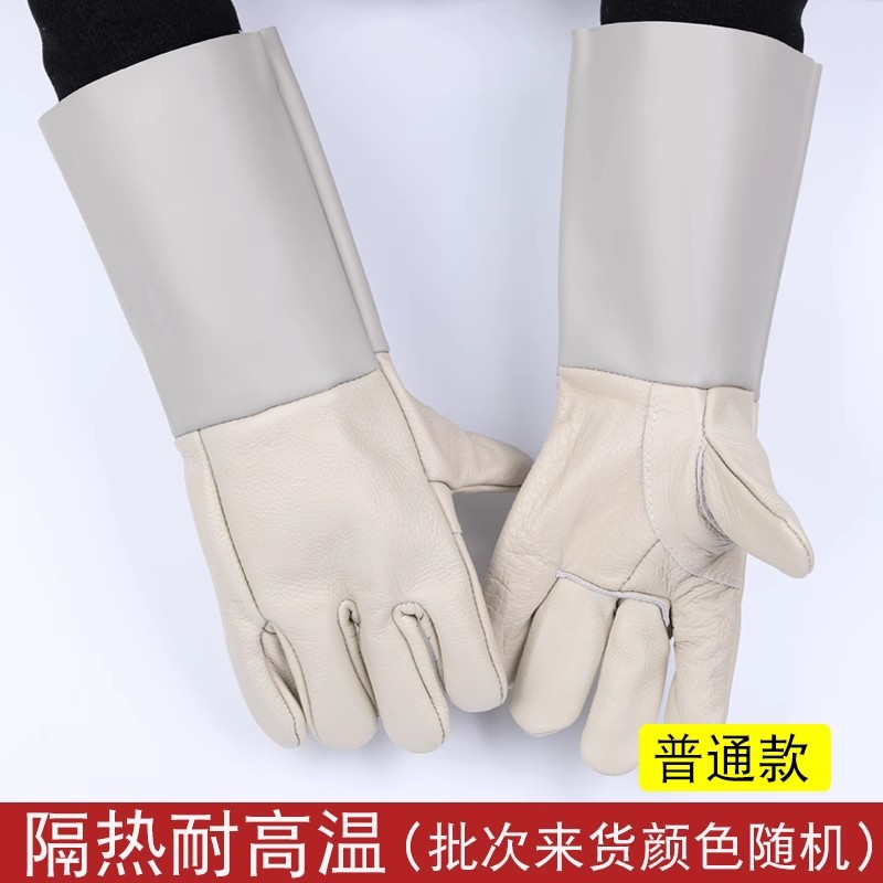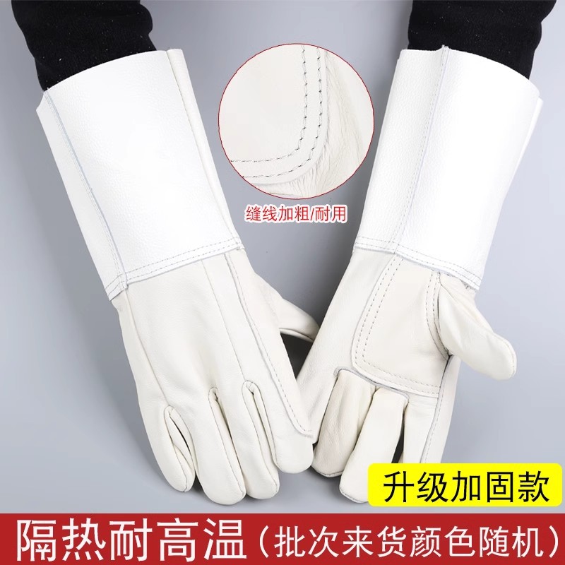 화재 라인 부드러운 마모 방지 스플래시 안티 스플래시 지연 용접 장갑 더블 레이어 긴 Cowhide 용접 장갑스토어 가기