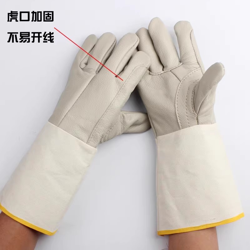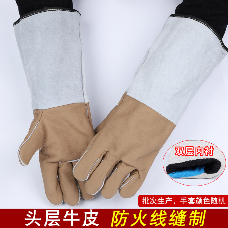 화재 라인 부드러운 마모 방지 스플래시 안티 스플래시 지연 용접 장갑 더블 레이어 긴 Cowhide 용접 장갑