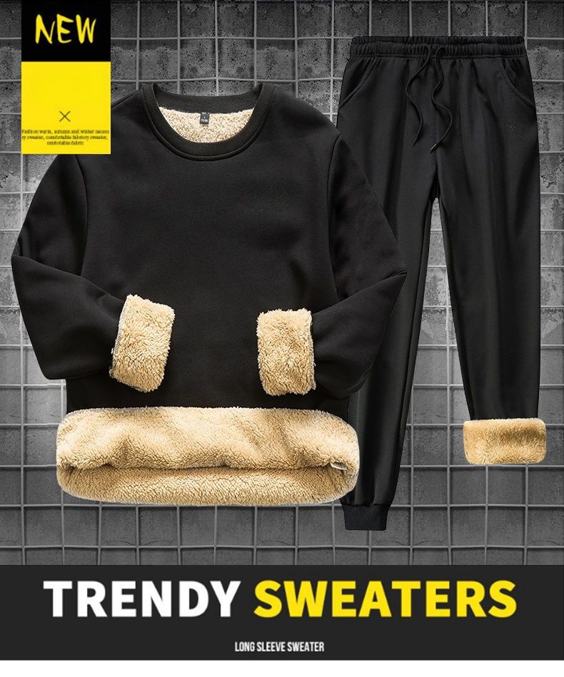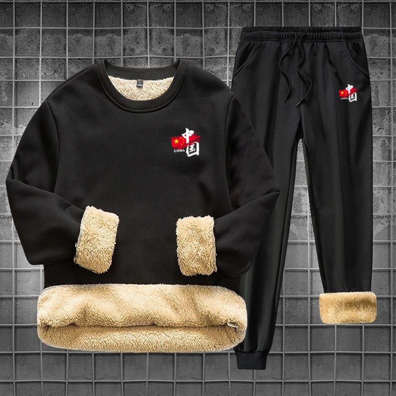 재고 세트] 남성용 겨울 양고기 벨벳 따뜻한 캐주얼 스웨트 바지 전신 기모 냉장 스포츠 세트