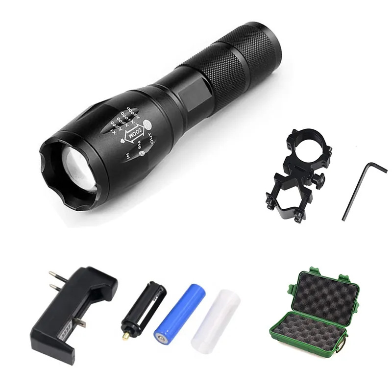 • 손전등 + 18650 + 범용 충전기 + 바지 클립 가방 + 선물 상자