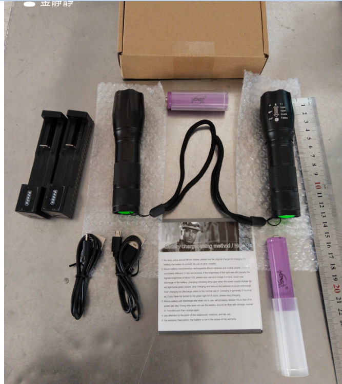 • 손전등 + 18650 + 범용 충전기 + 자동차 클립 + 선물 상자