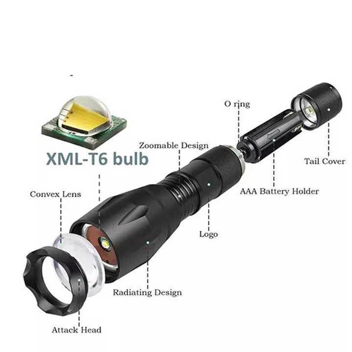 T6 손전등 텔레스코픽 줌 알루미늄 합금 디밍 야외 조명 충전식 세트 야외 핸드 헬드 손전등