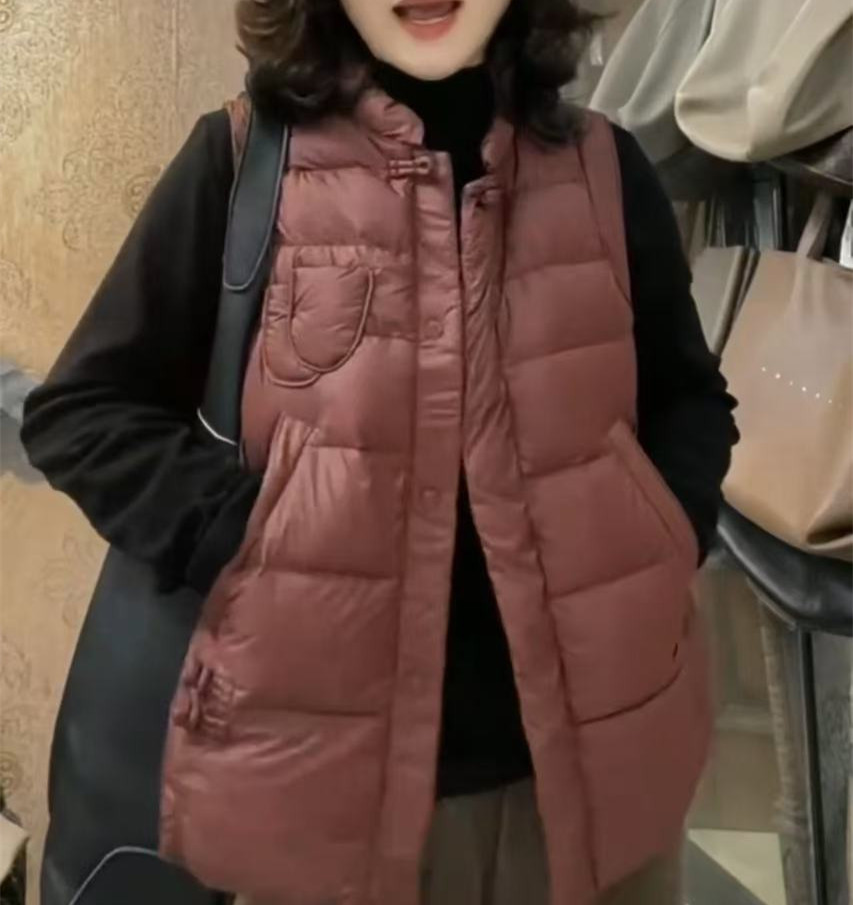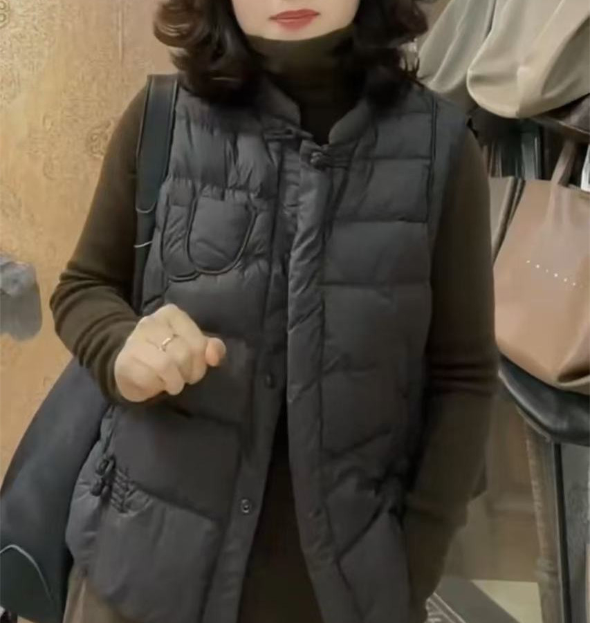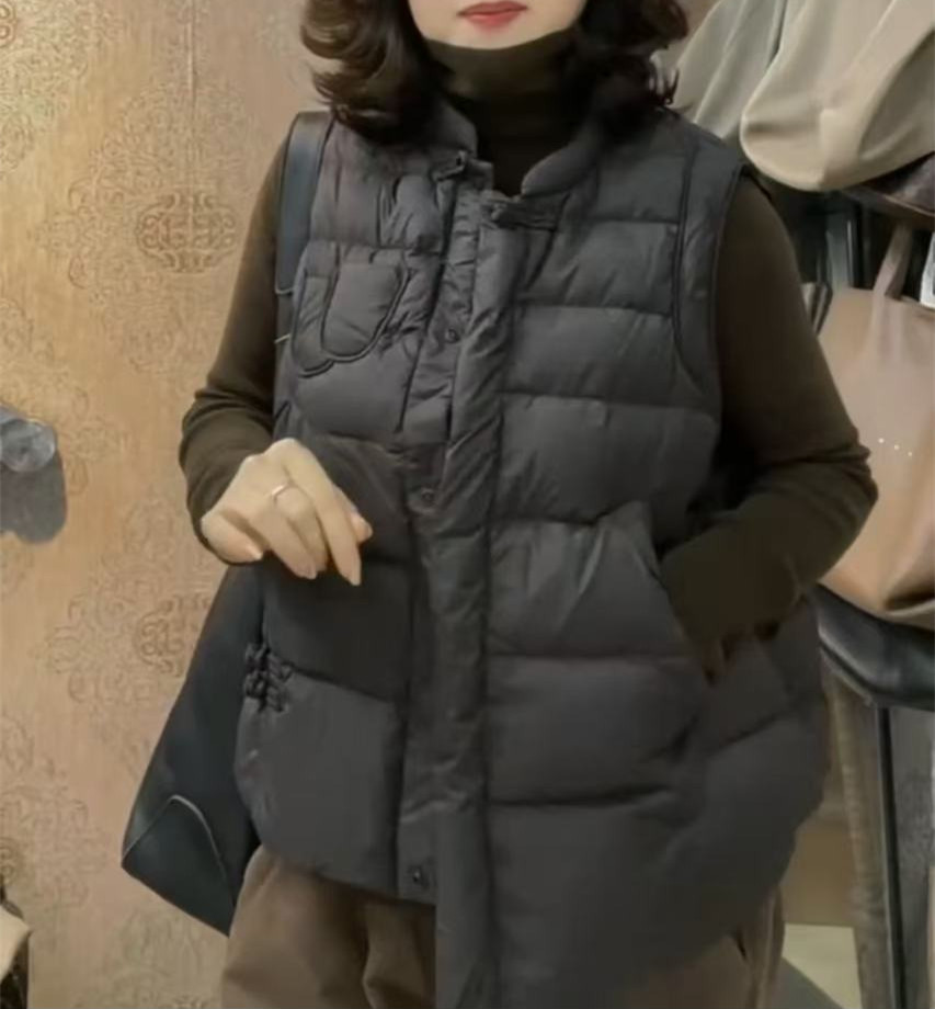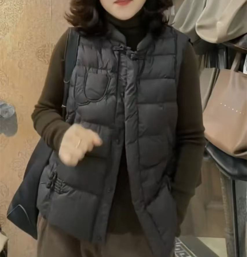 241112 큰 Aimei Yiyuan 2024 겨울 새로운 느슨한 복고풍 단색 면 조끼 패션 캐주얼 따뜻한 여성
