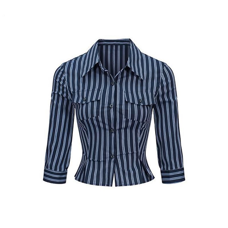 디자인 센스 섹시 패셔블 스트라이프 슬림 핏 타이트 허리 셔츠 여성의 가을과 겨울 새로운베이스 조끼 가슴 짧은 탑스토어 가기