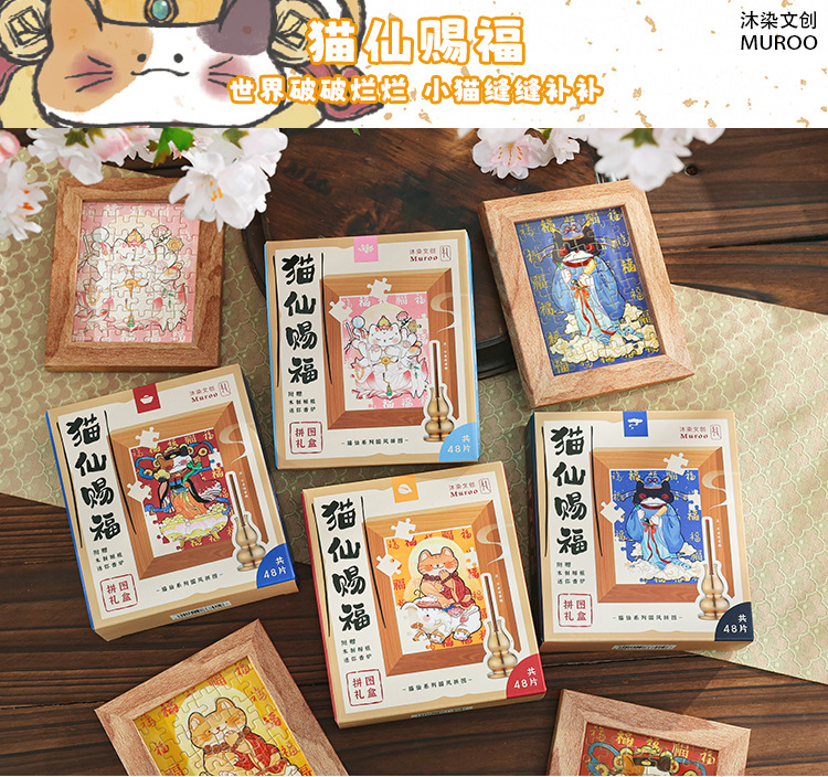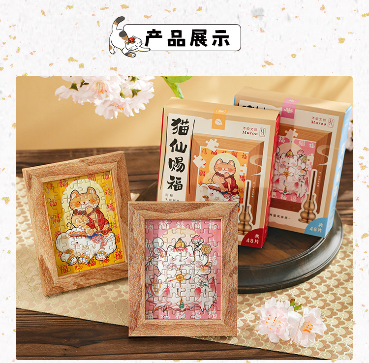 Muran 퍼즐 선물 상자 고양이 요정 축복 교육 장난감 귀여운 고양이 퍼즐 선물 데스크탑 사진 프레임 장식 장식품스토어 가기