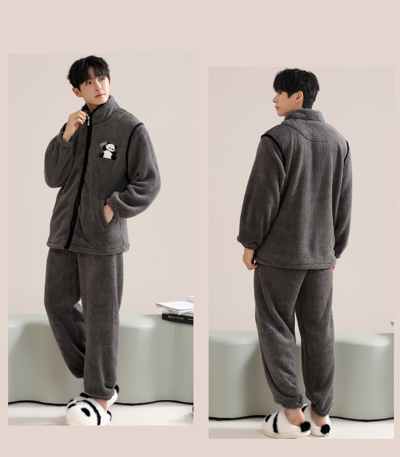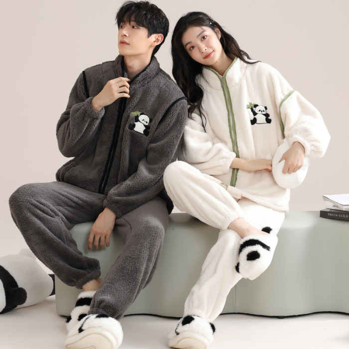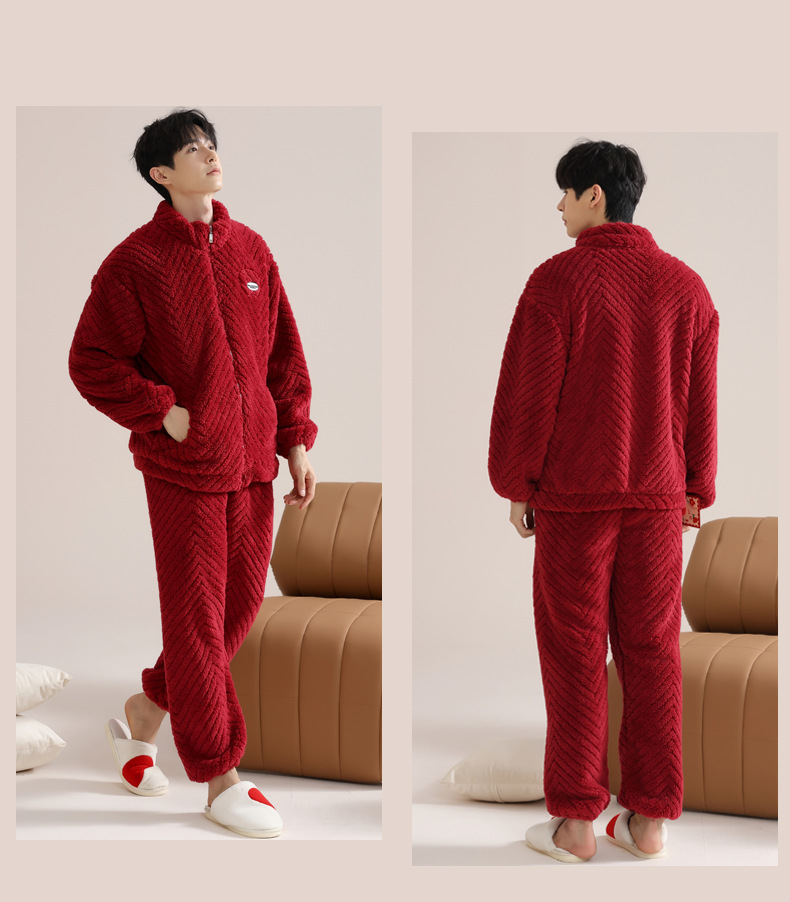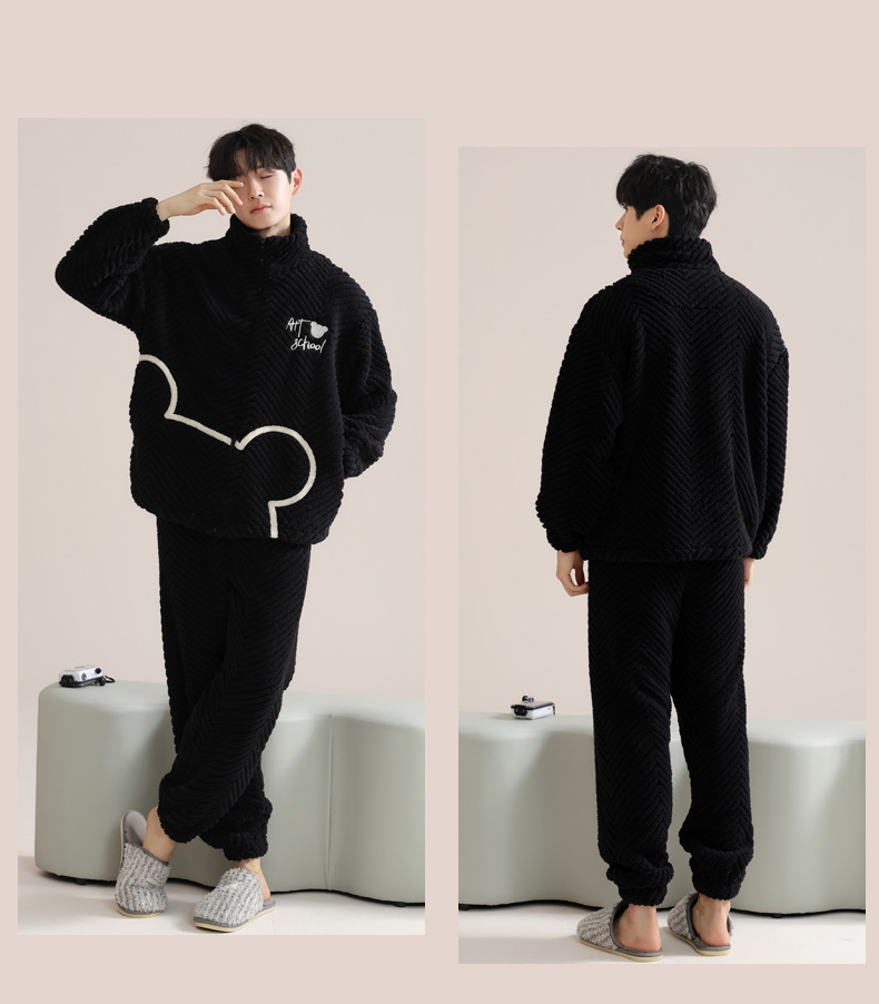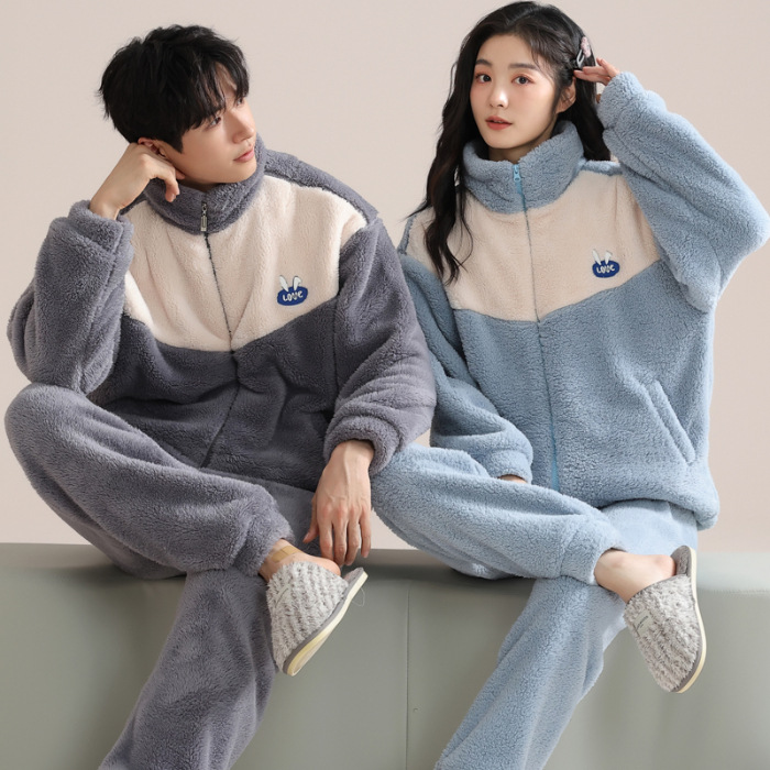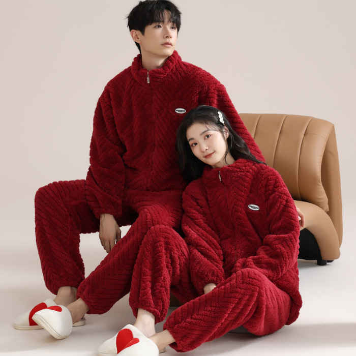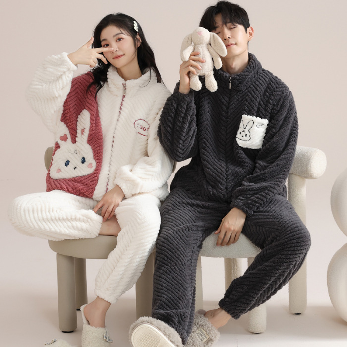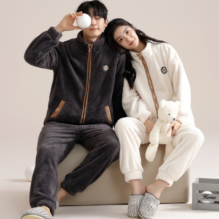 커플 잠옷 여성의 겨울 새 자카드 두꺼운 겉옷 홈웨어 플란넬 따뜻한 세트 350g