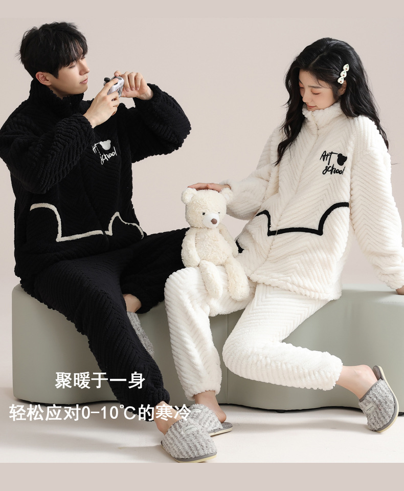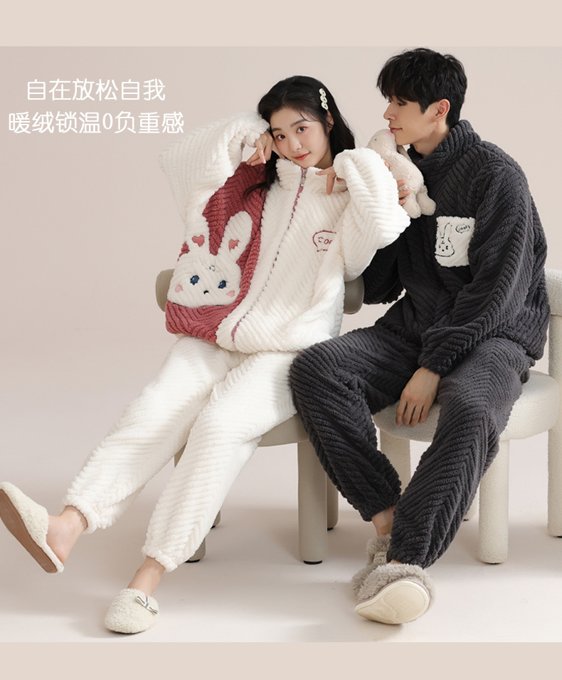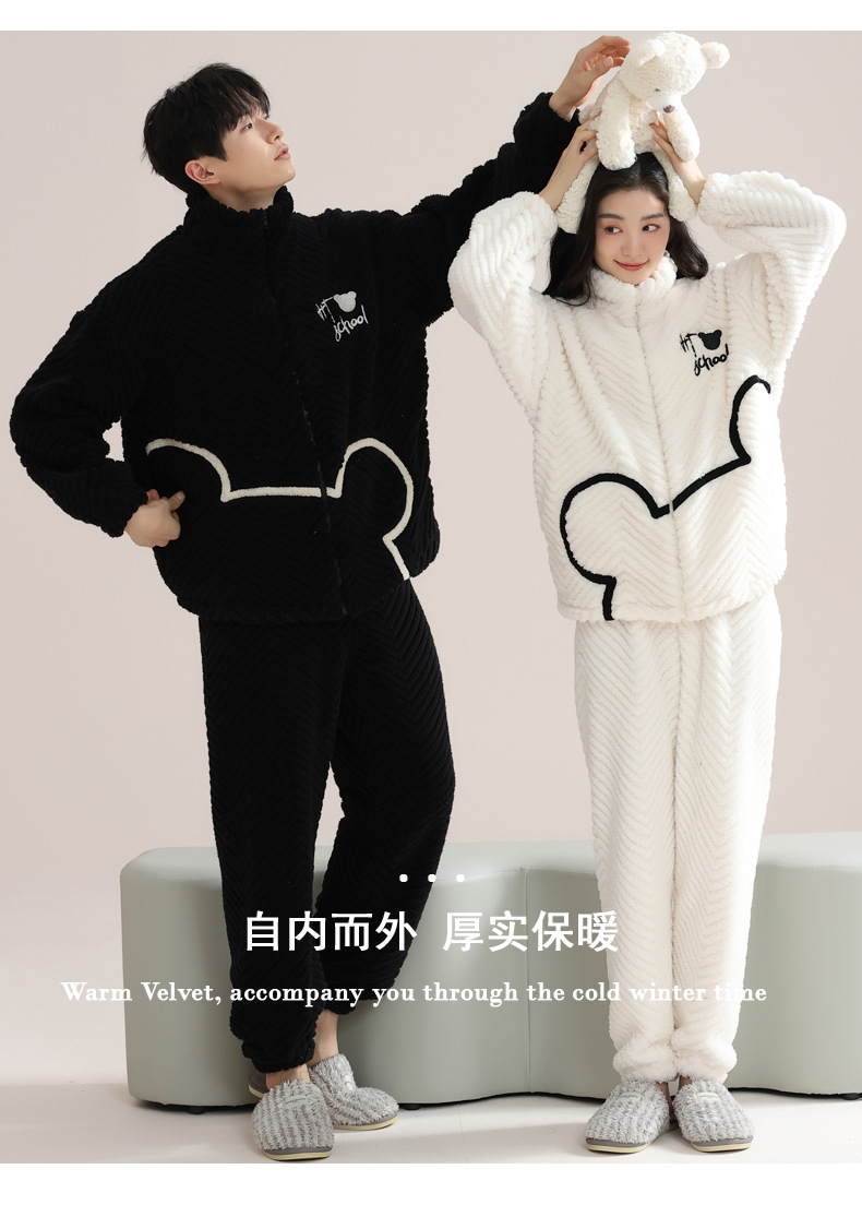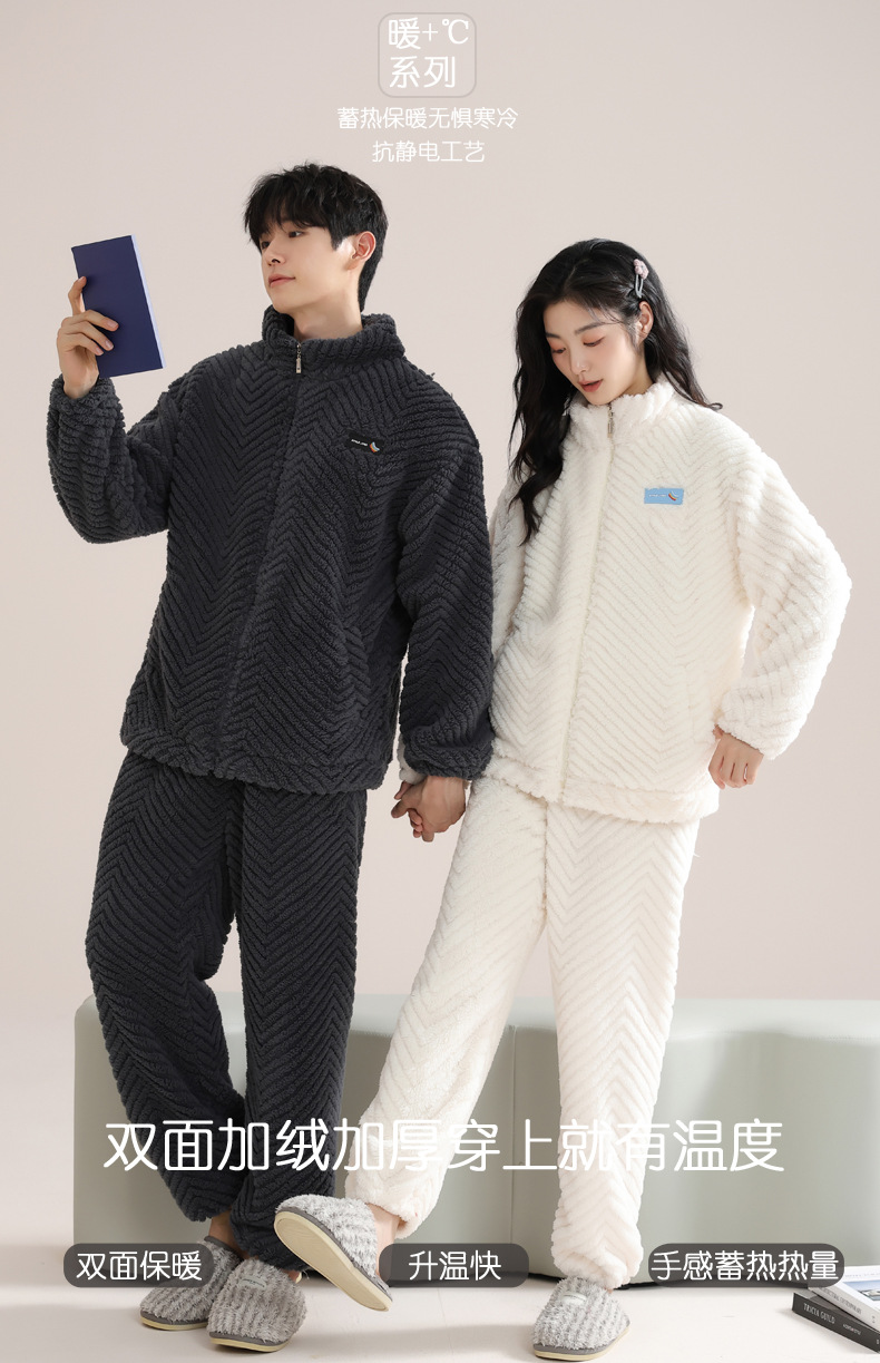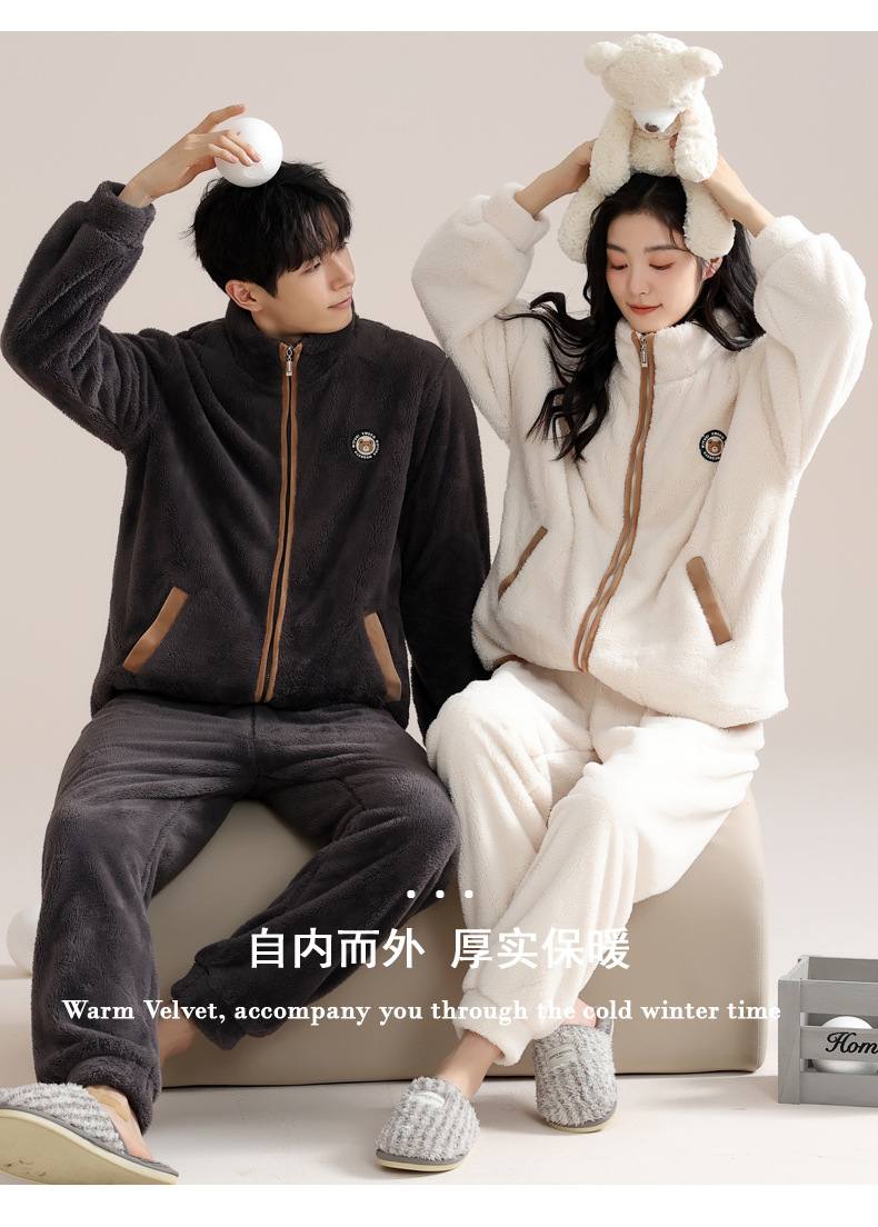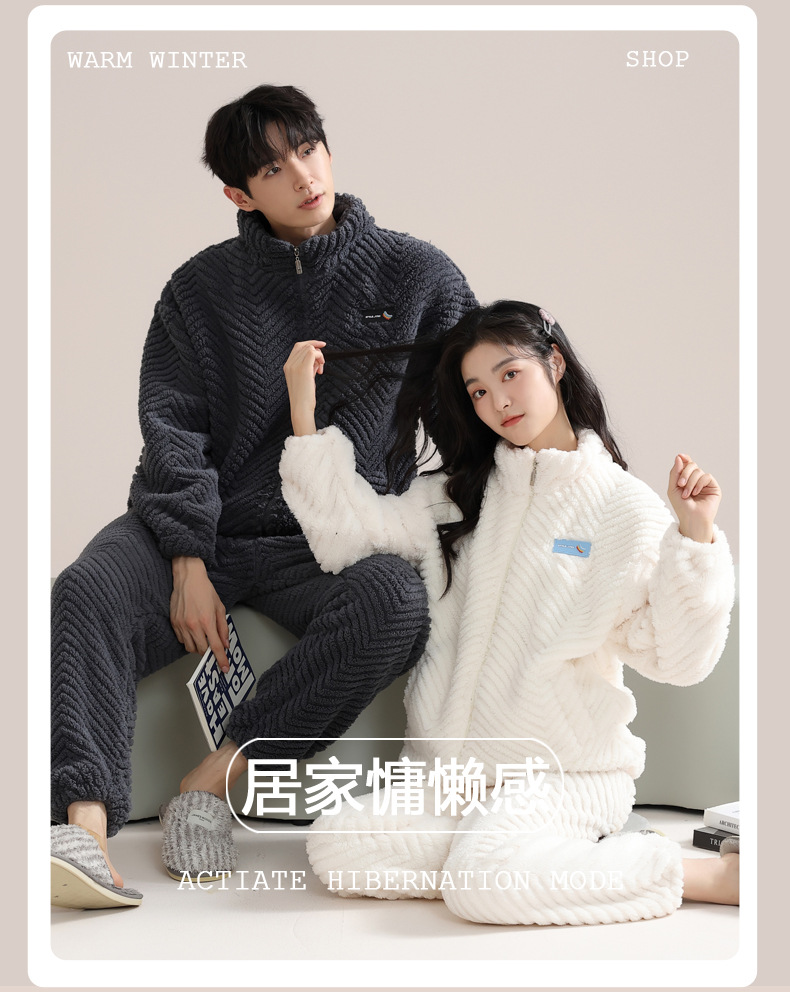 커플 잠옷 여성의 겨울 새 자카드 두꺼운 겉옷 홈웨어 플란넬 따뜻한 세트 350g스토어 가기