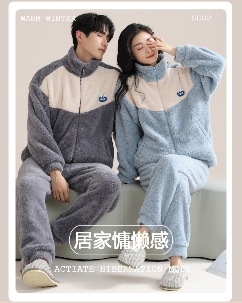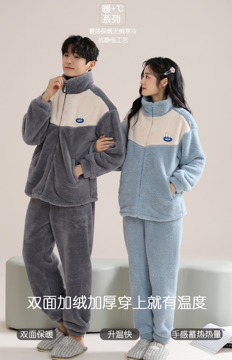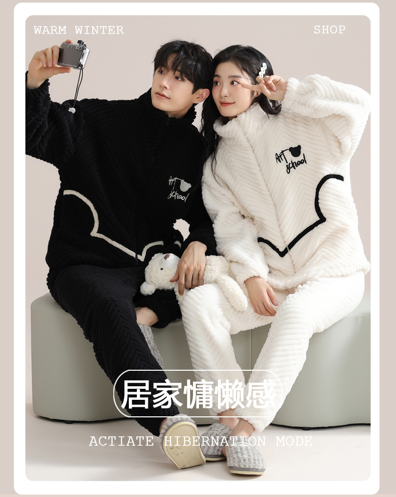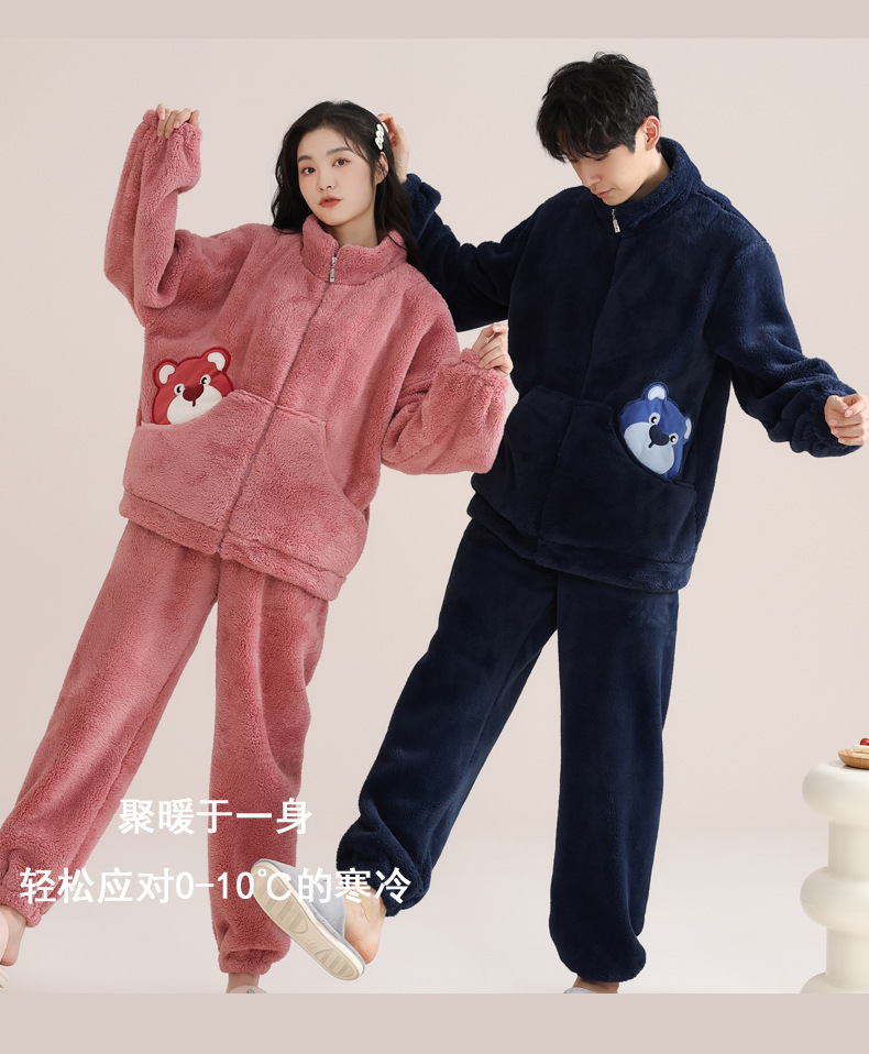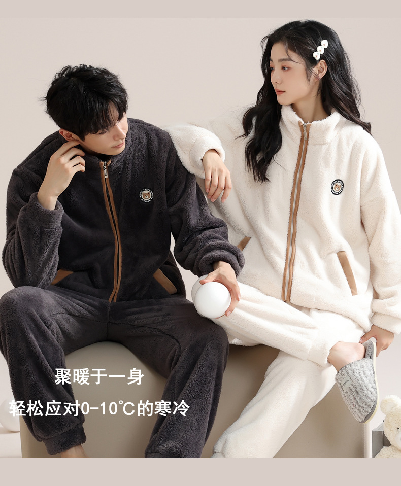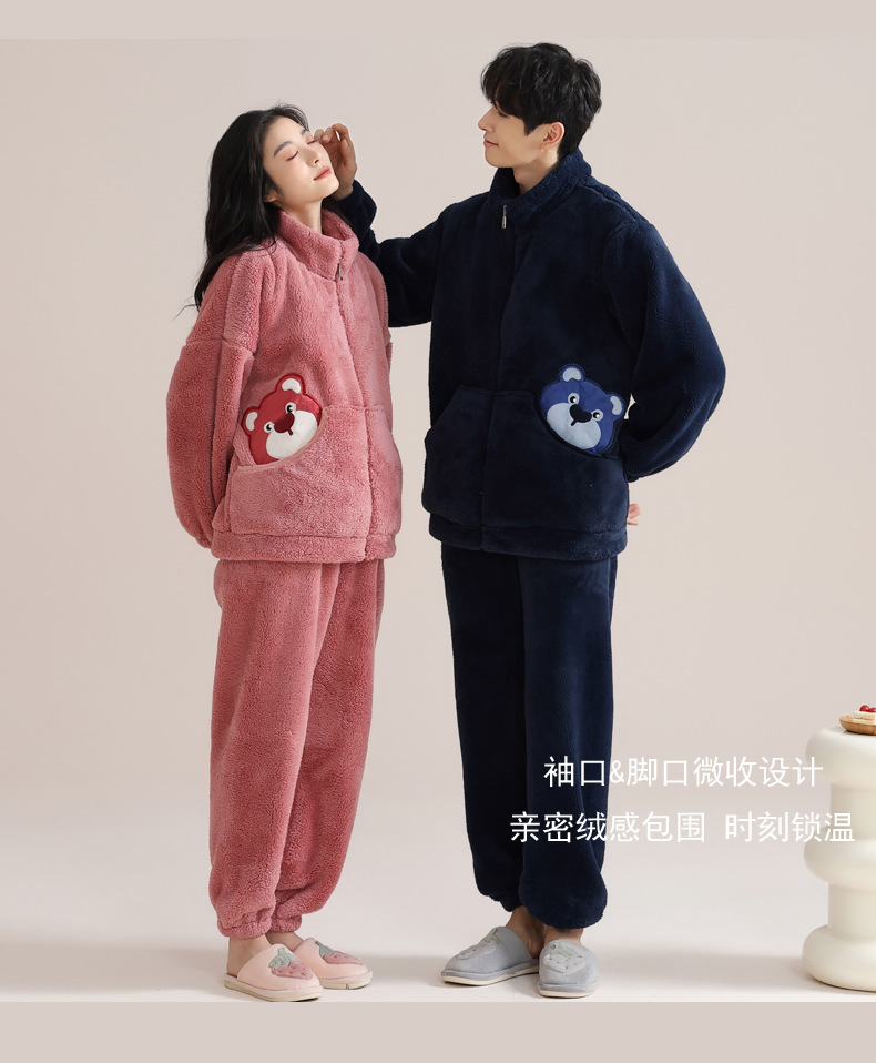 커플 잠옷 여성의 겨울 새 자카드 두꺼운 겉옷 홈웨어 플란넬 따뜻한 세트 350g스토어 가기