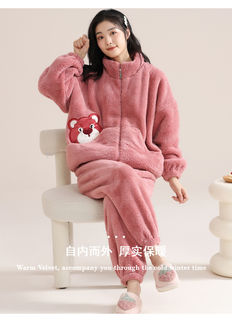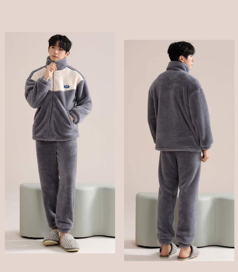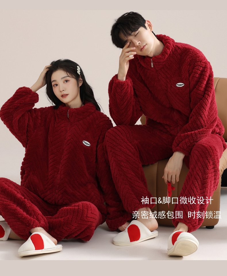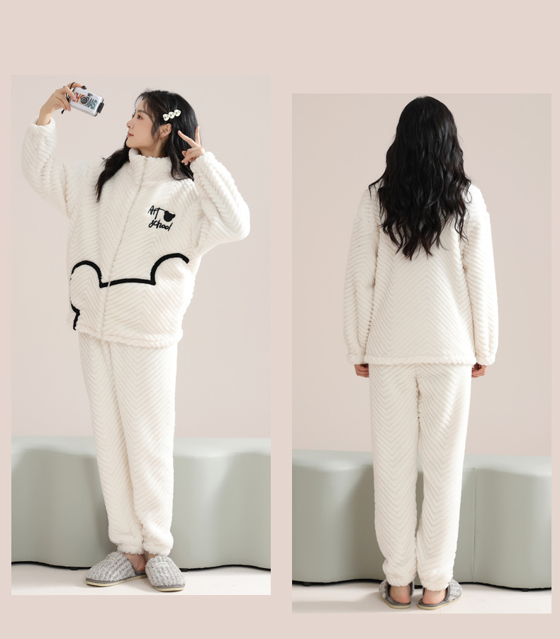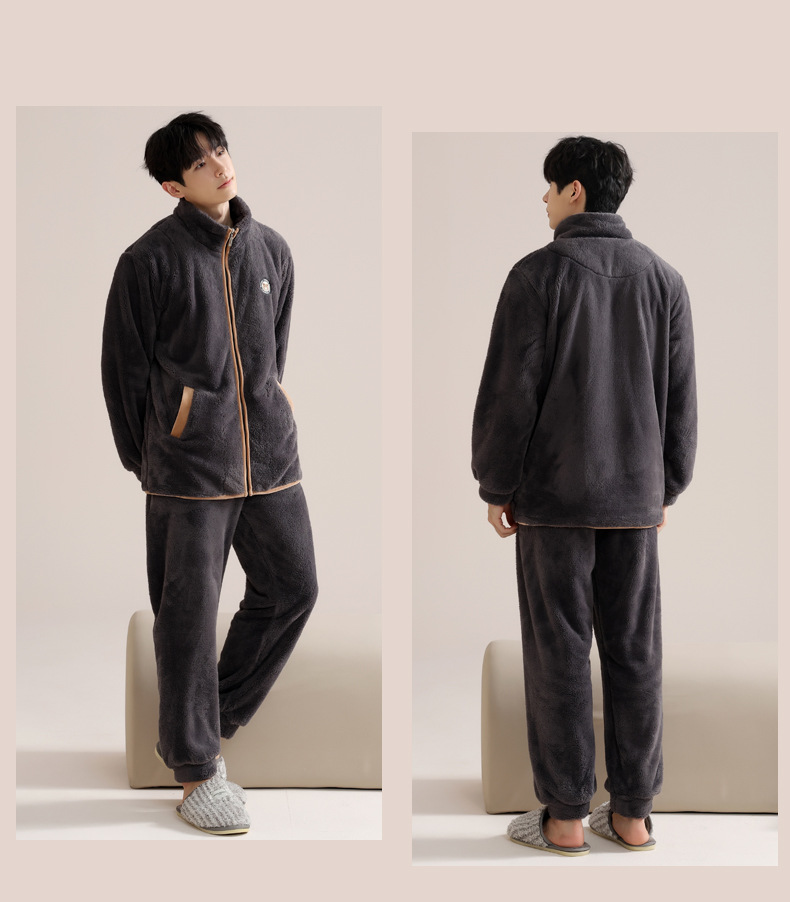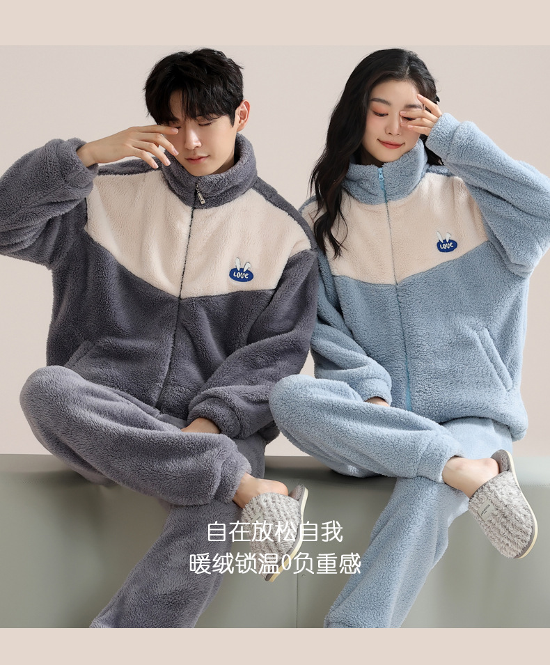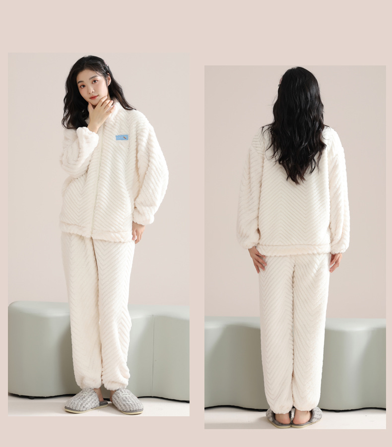 커플 잠옷 여성의 겨울 새 자카드 두꺼운 겉옷 홈웨어 플란넬 따뜻한 세트 350g스토어 가기