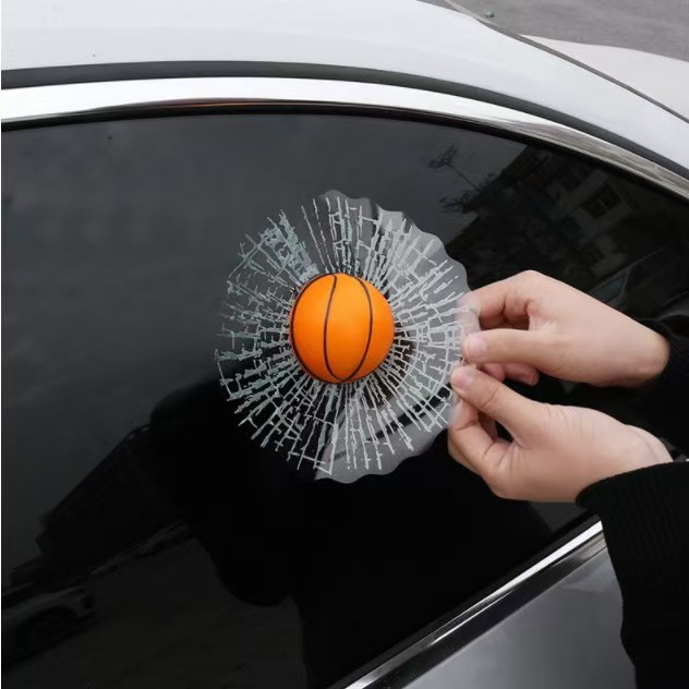 미친 골프 공 깨진 유리 스티커 창조적 인 스푸핑 자동차 스티커가 뒤쪽 창 유리 자동차 용품 자동차 스티커를 긁습니다.스토어 가기