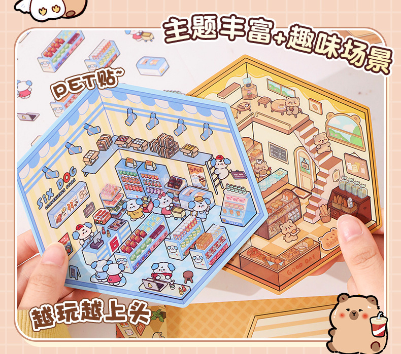 카피 발라 조경 스티커 3d 미니어처 오두막 재미 만화 강아지 diy 손 계정 조용한 책 스티커스토어 가기