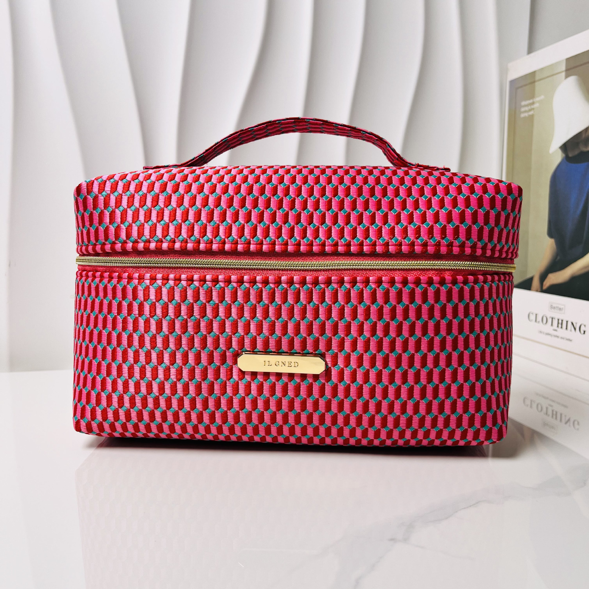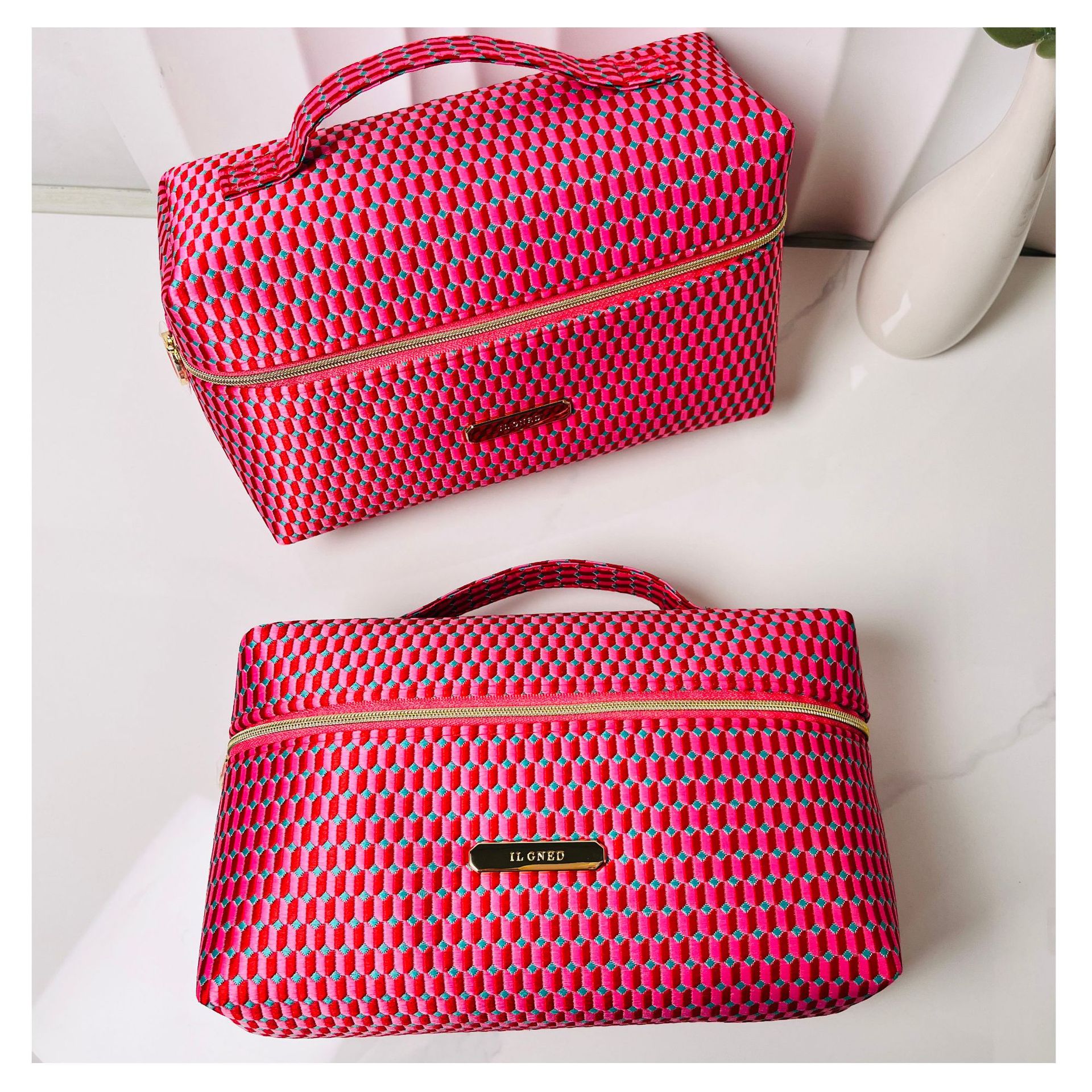 • ILGNED 휴대용 화장품 가방 (라이트 럭셔리 레드)