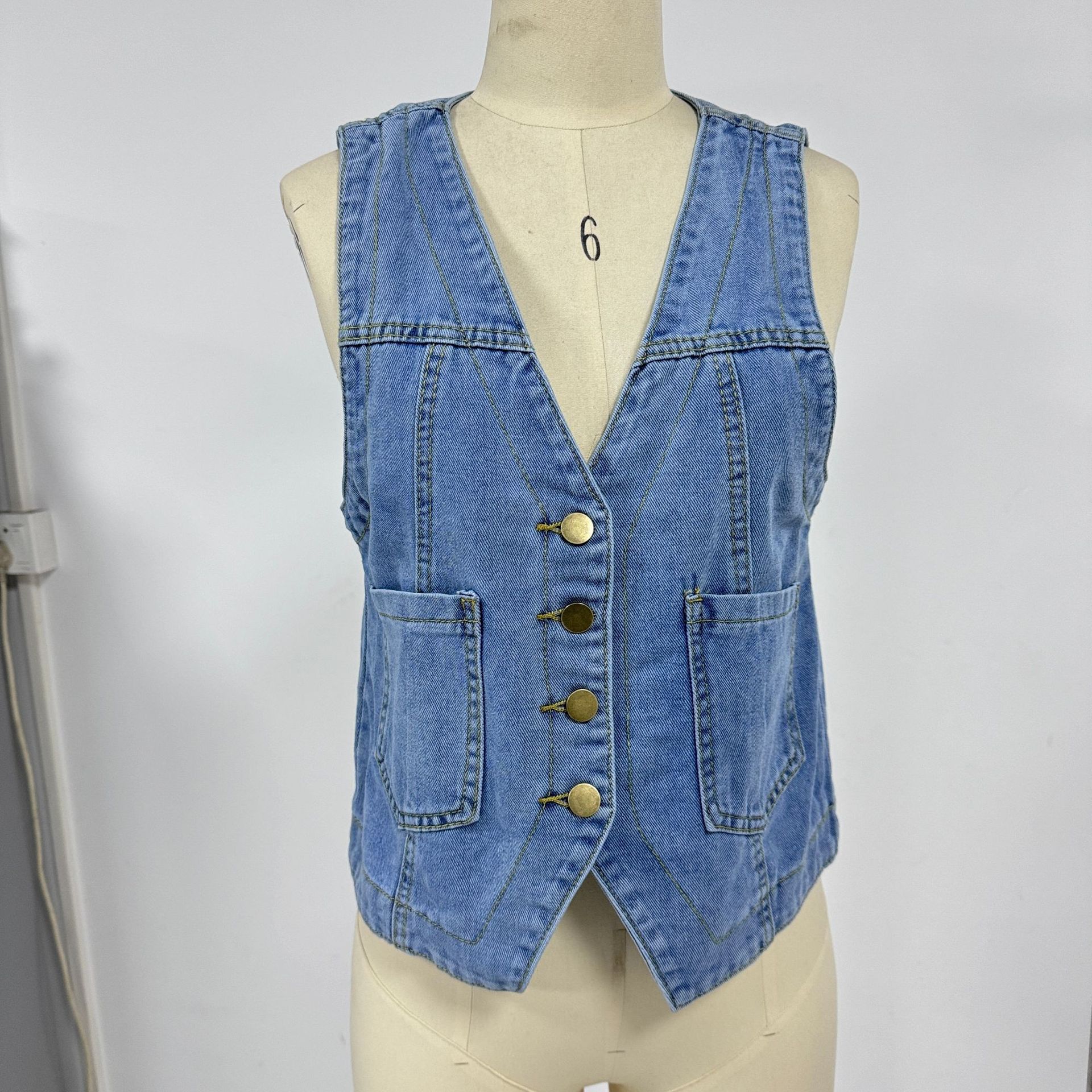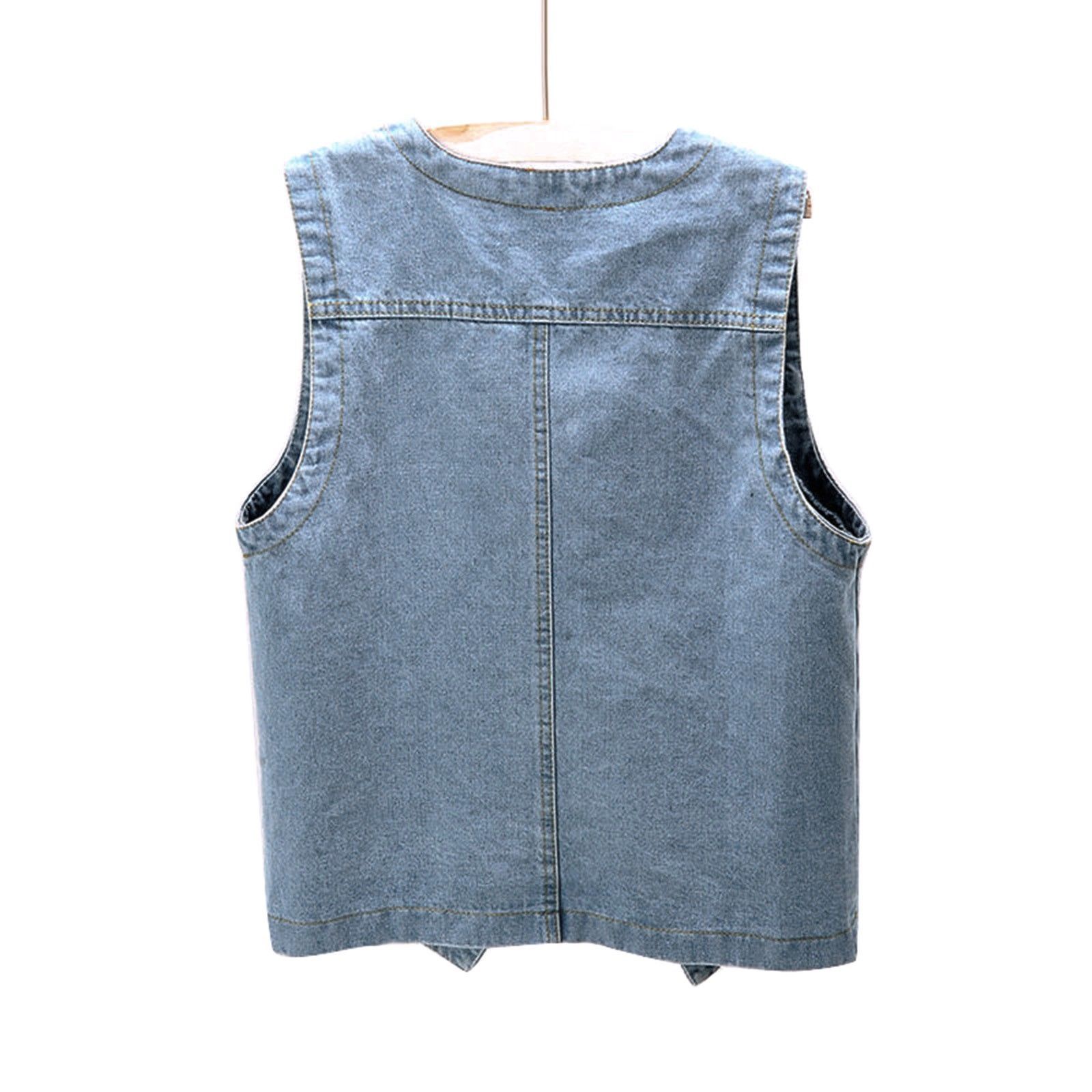 봄과 여름 데님 둥근 목 조끼 여자 짧은 느슨한 한국 BF 민소매 재킷 조끼스토어 가기
