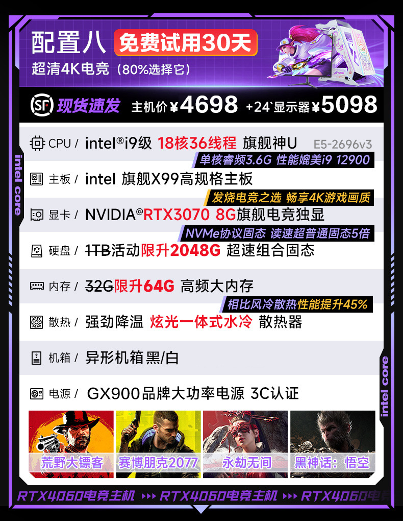 컴퓨터 데스크톱 호스트 풀 세트 인터넷 카페 전자 스포츠 게임 하이 엔드 수냉식 조립 기계 홈 오피스 라이브 먹는 치킨스토어 가기