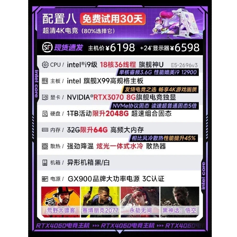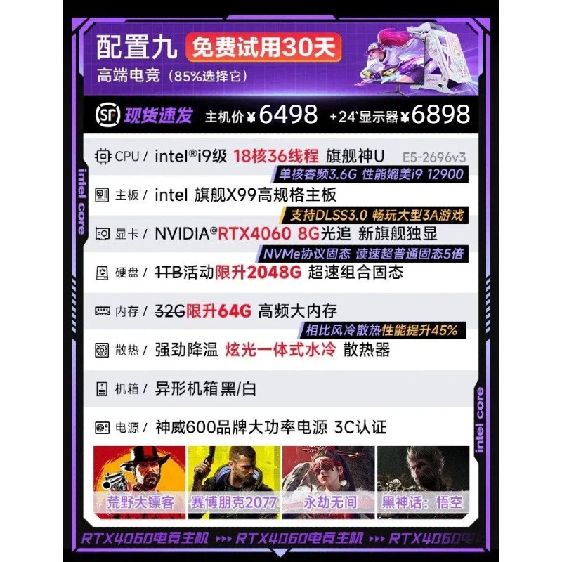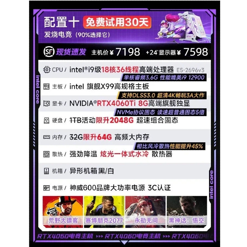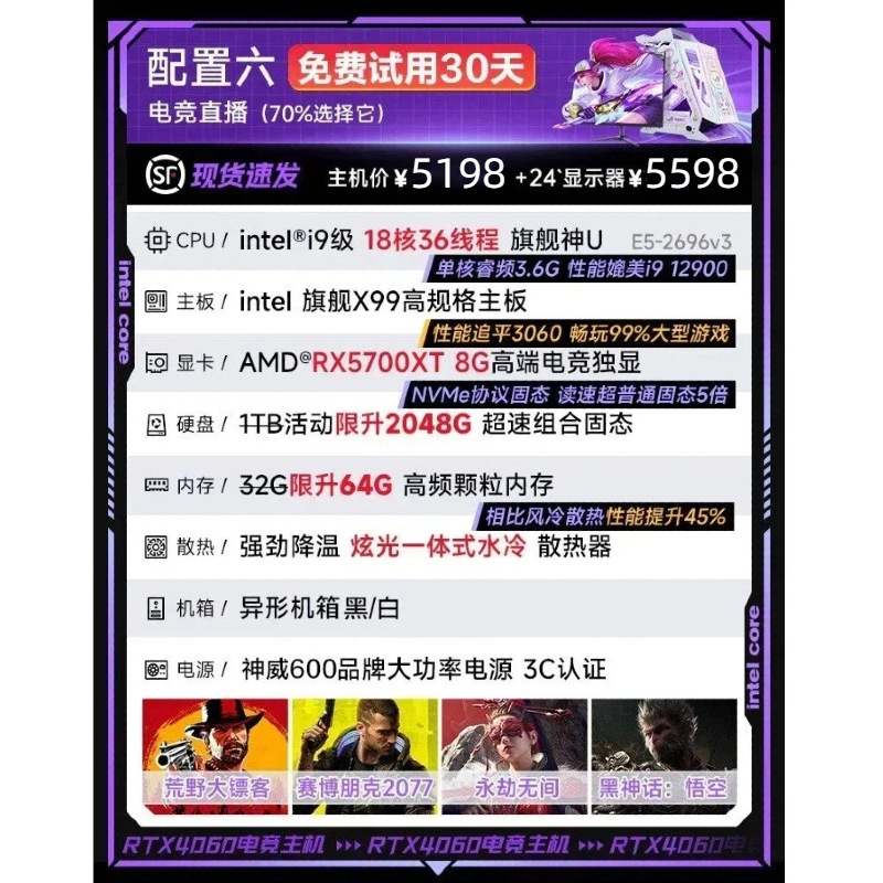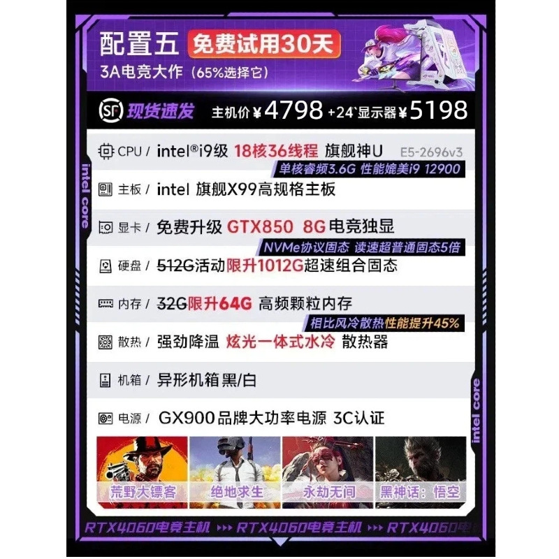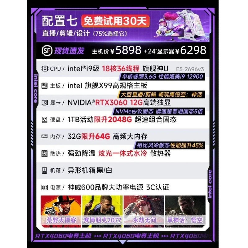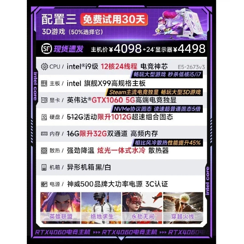 컴퓨터 데스크탑 본체, 인터넷 카페 수냉식 조립 PC, 가정용 사무용 라이브 방송, PUBG, 모니터, 그래픽 카드