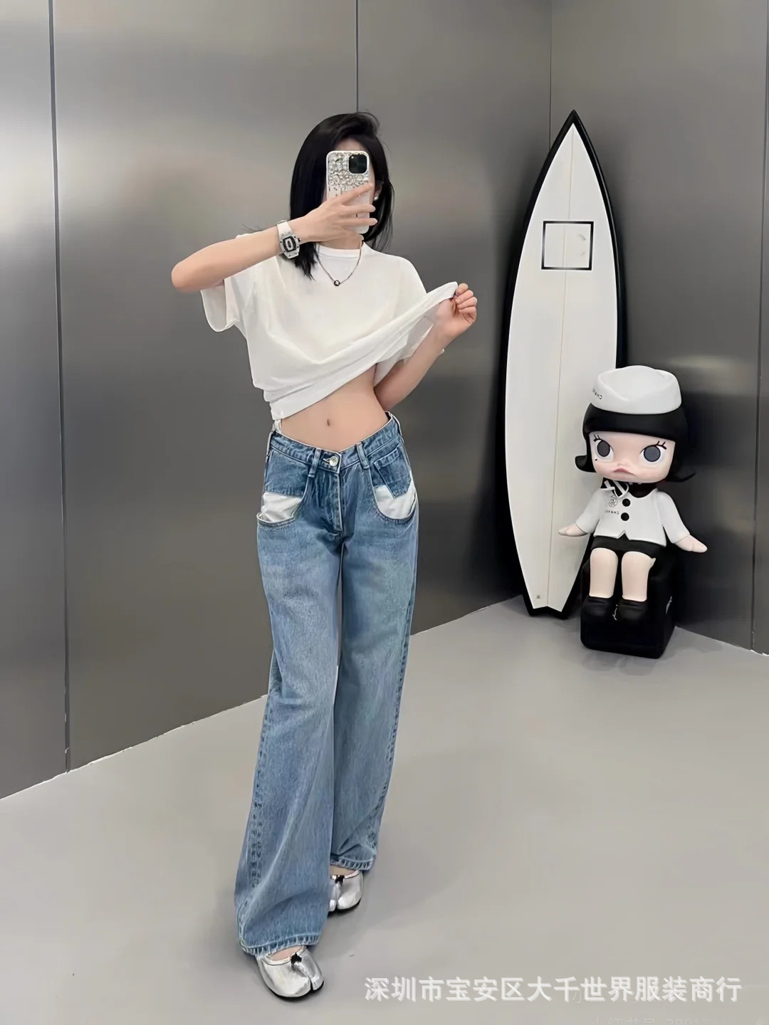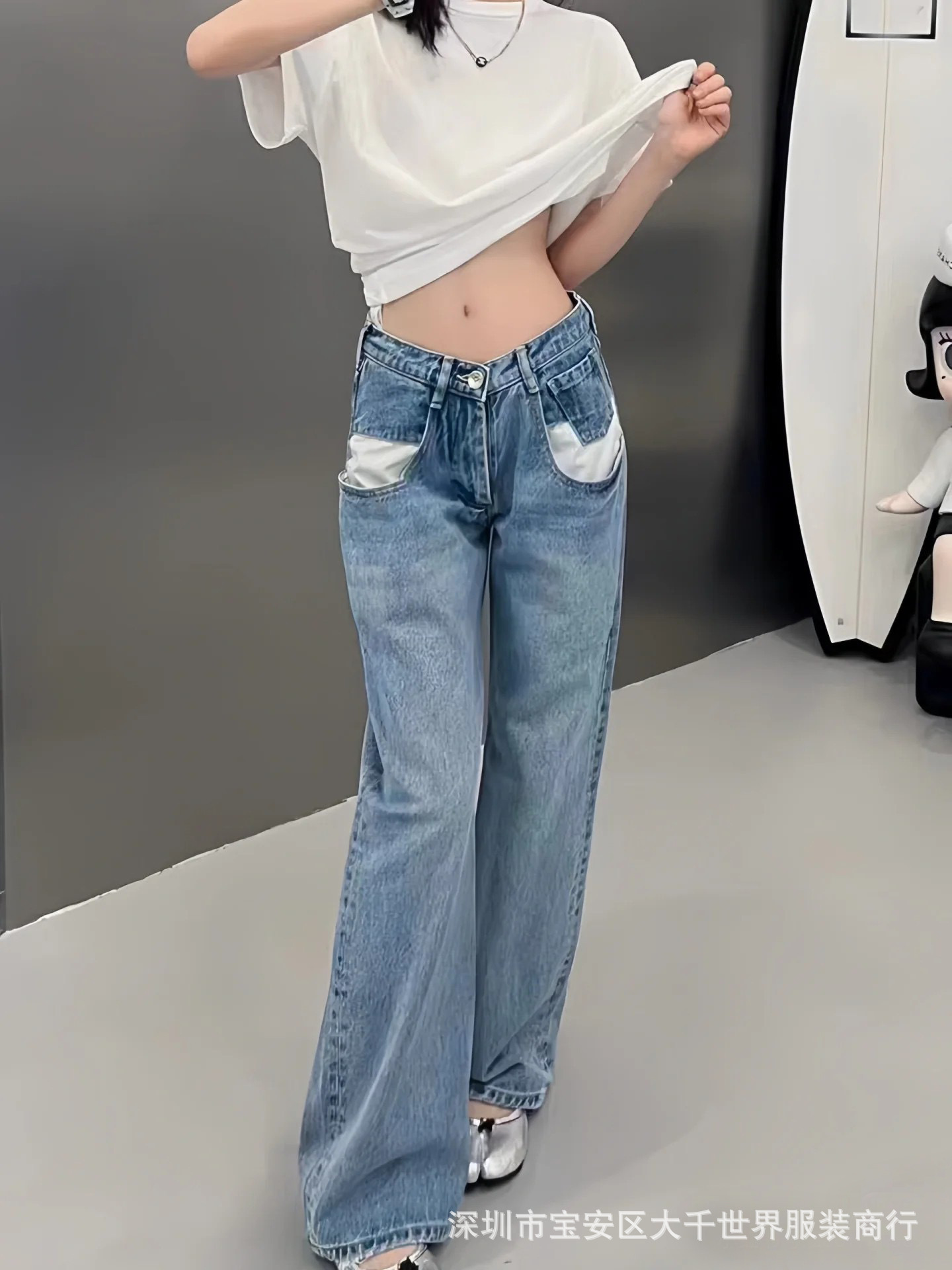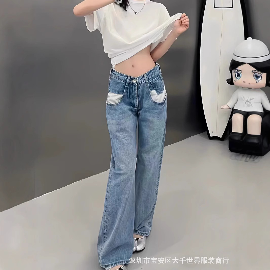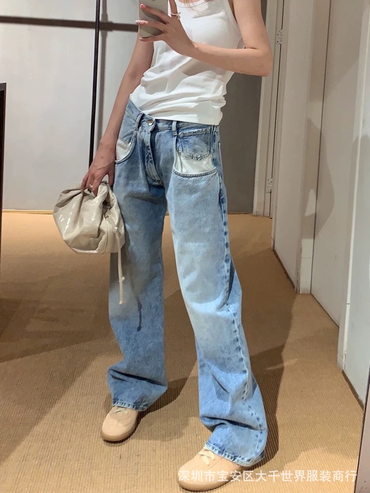 한 Xuanya 같은 스타일-한국 스타일 패션 화이트 포켓 디자인 여성 캐주얼 슬림 데님 바지 가을과 겨울 24