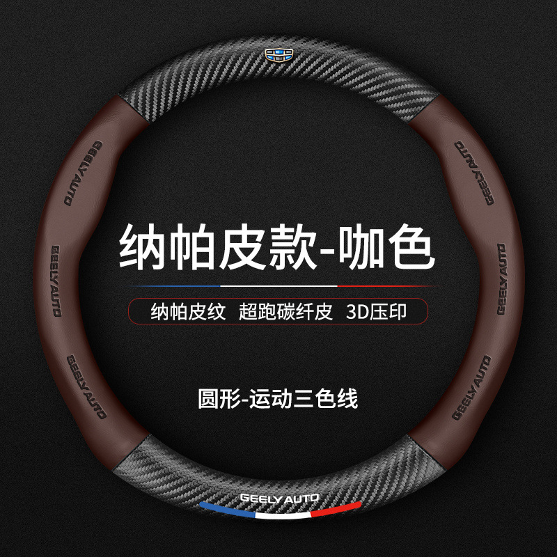型号 JL19;表层材质 其他;风格 运动;颜色分类 3D字母+碳纤黑+圆形+吉利标 3D字母+碳纤红+圆形+吉利标 3D字母+碳纤咖+圆形+吉利标 3D字母+碳纤黑+D形+吉利标 3D字母+碳纤红+D形+吉利标 3D字母+碳纤咖+D形+吉利标;匹配方向盘直径 38cm;适用季节 四季通用;安装类型 专车专用