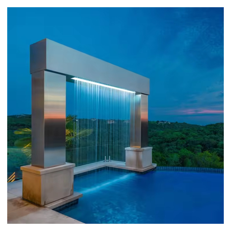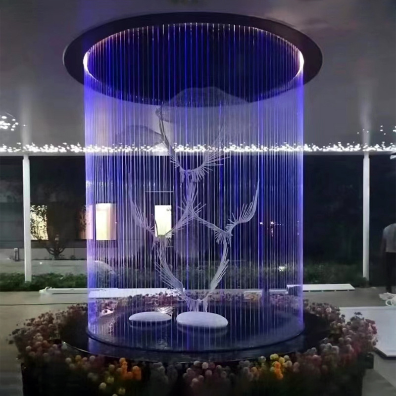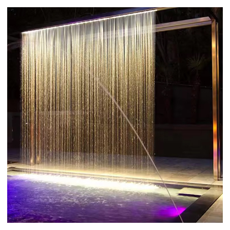 맞춤형 스테인리스 스틸 광섬유 풀드로잉 워터 커튼 폭포수 배출구 워터 시닉 워터 커튼월 러닝 워터 레인 커튼 워터 디스플레이 스크린