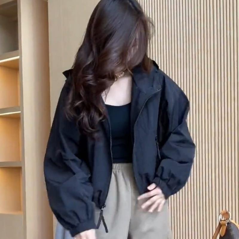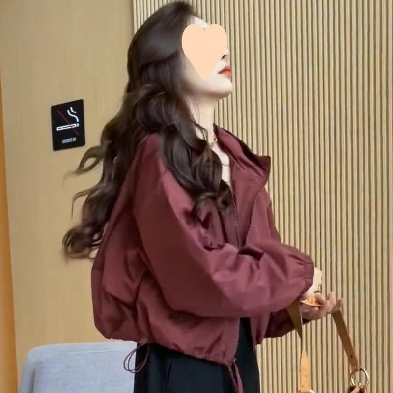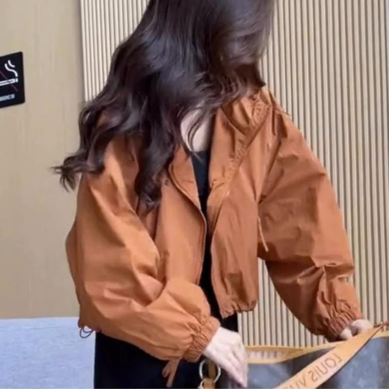 후드 폭행 의류 여성 쇼트 코트 봄과 가을 새로운 작은 캐주얼 올 매치 재킷 재킷 재킷 직접 판매스토어 가기