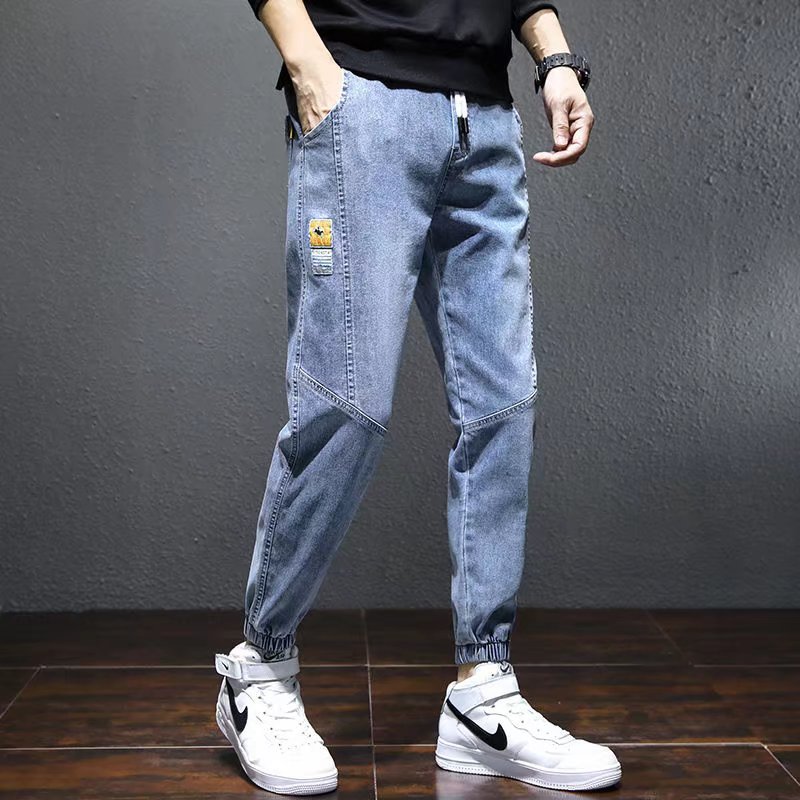 트렌디 한 브랜드 남성 청바지 2024 가을/겨울 내마모성 발 바인딩 캐주얼 바지 스포츠 느슨한 플러스 사이즈 9 점 오버롤스토어 가기