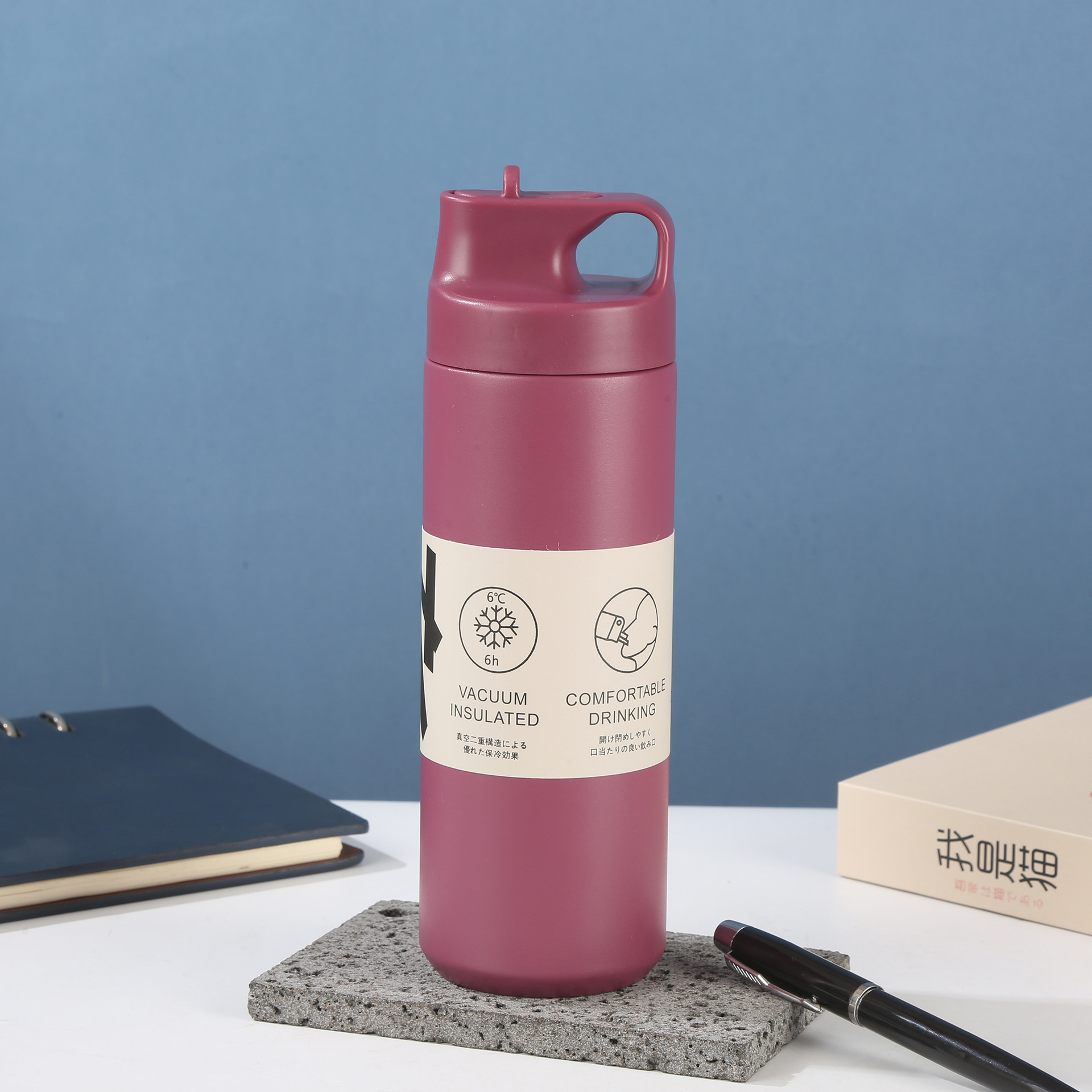국경 일본 304 스테인레스 스틸 보온병 컵 흡입 노즐 스포츠 물 컵 간단한 휴대용 스포츠 물병 도매스토어 가기