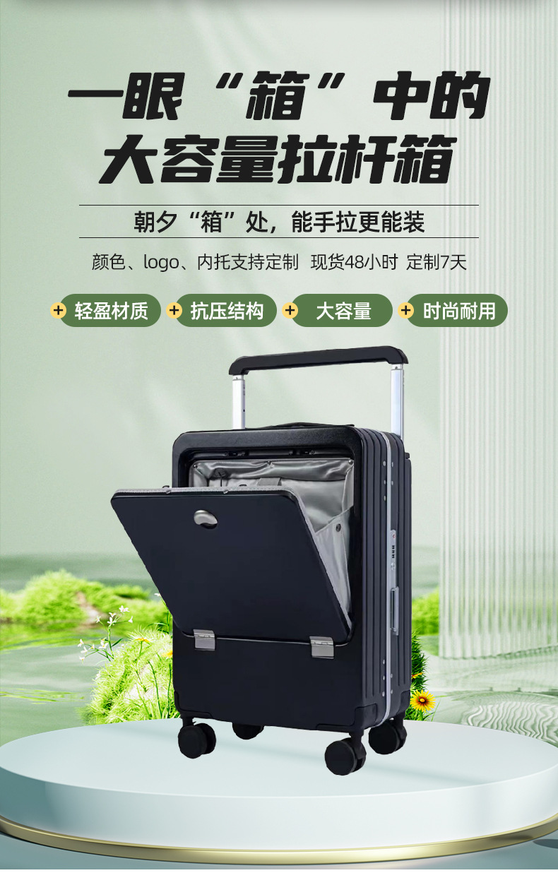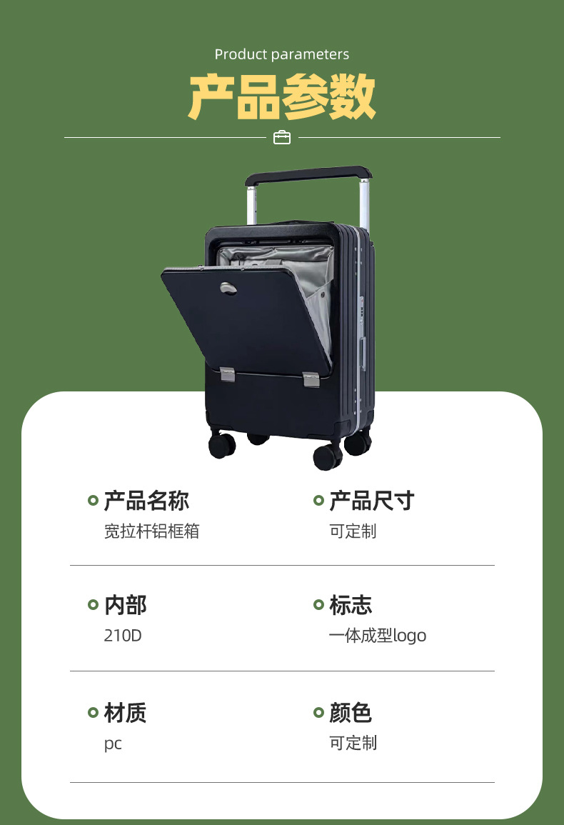 전면 개방 대용량 알루미늄 프레임 단색 하이 엔드 비즈니스 수하물 와이드 풀로드 라이트 가방 제조 업체