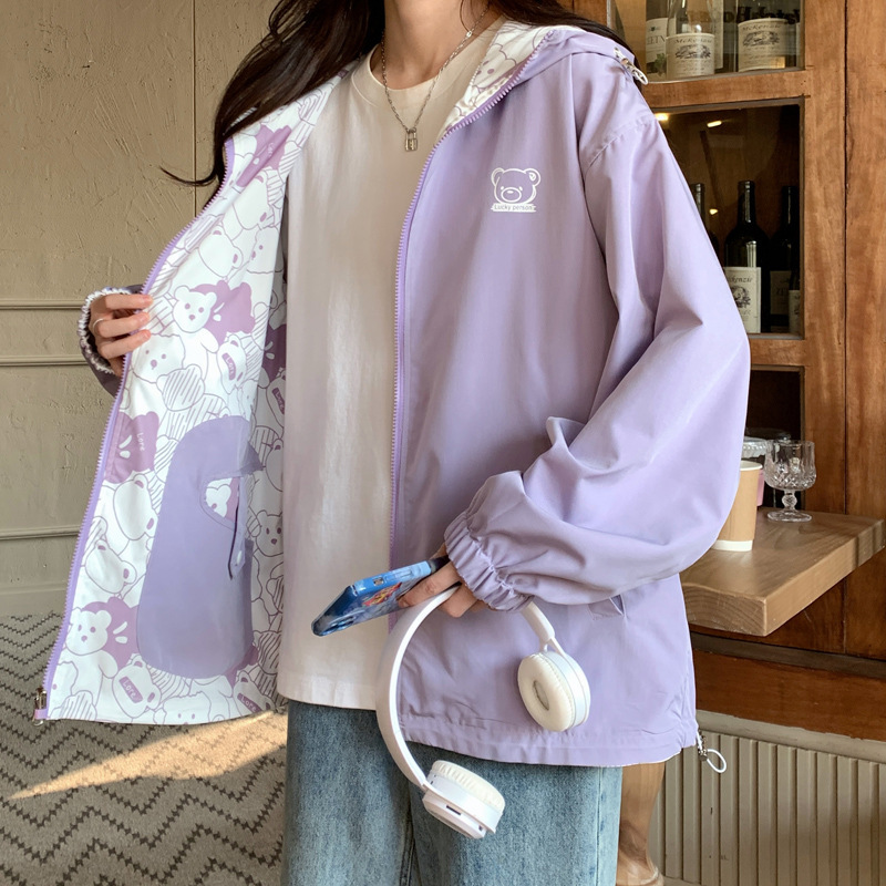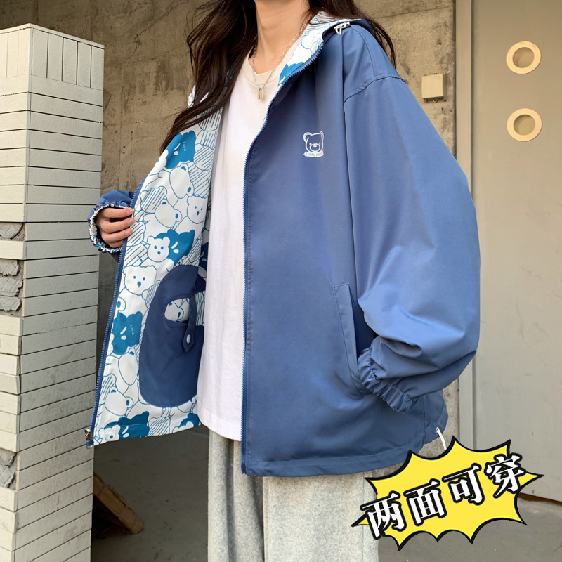 양면 코트 소녀 봄과 가을 2024 새 중학교 고등학생 얇은 캐주얼 재킷 윈드브레이커스토어 가기