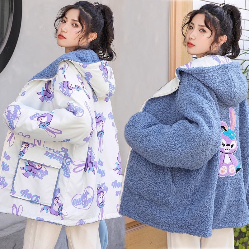 • 블루 벨벳 화이트 페이스 토끼 스타일 플러스 벨벳 두꺼운 리버시블 [가을과 겨울]
