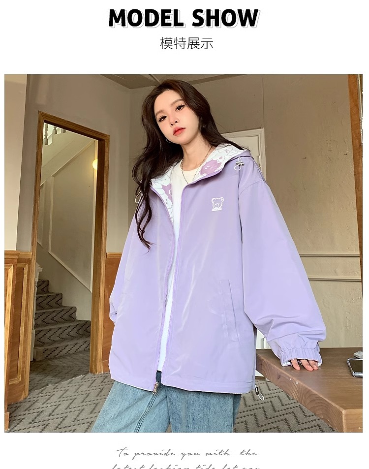 양면 코트 소녀 봄과 가을 2024 새 중학교 고등학생 얇은 캐주얼 재킷 윈드브레이커