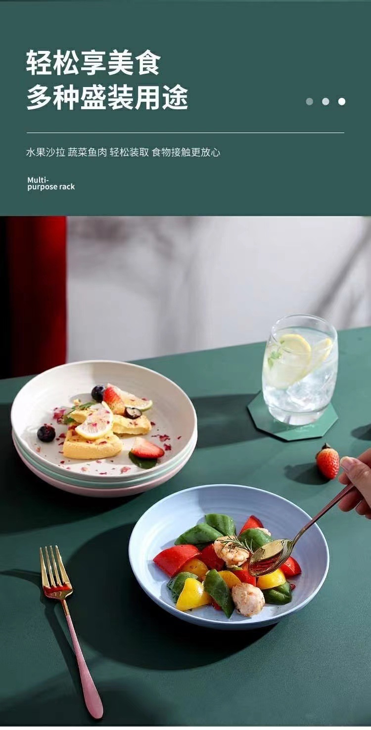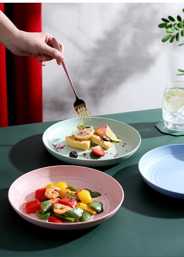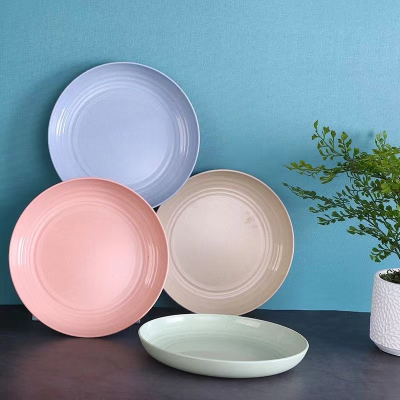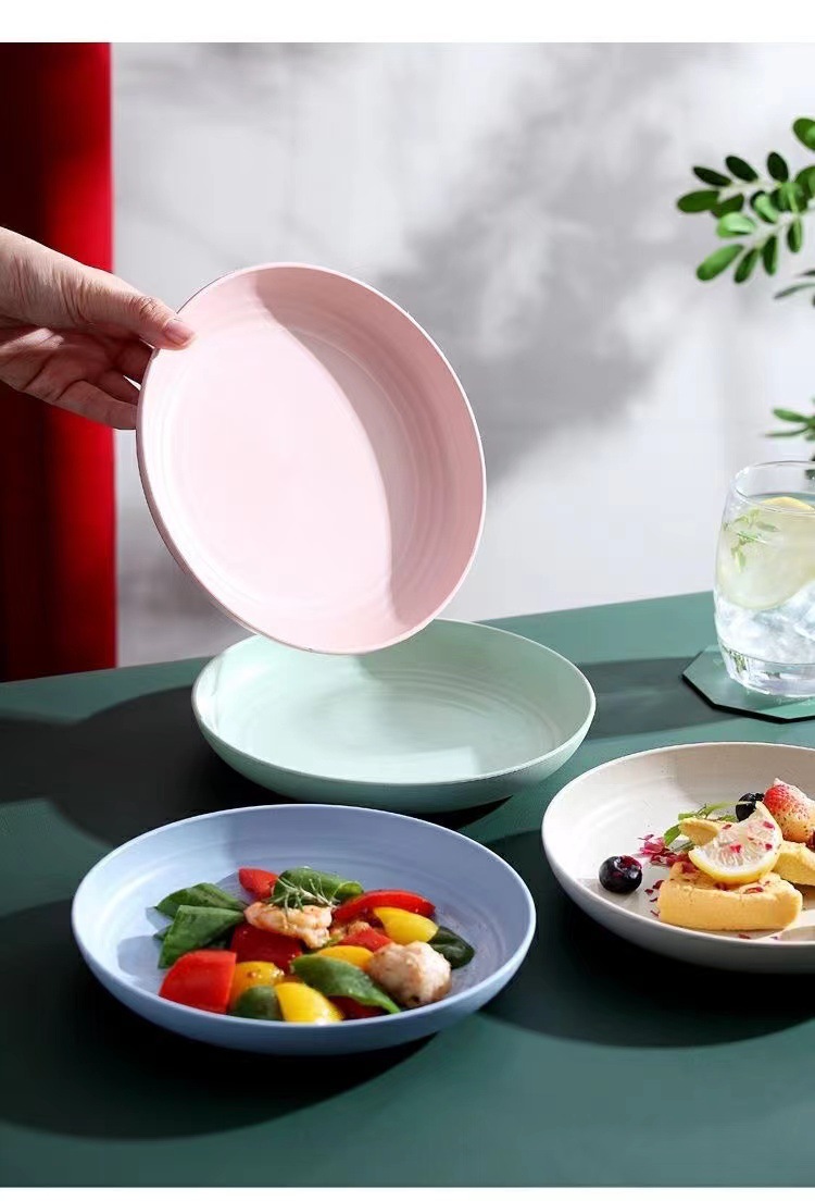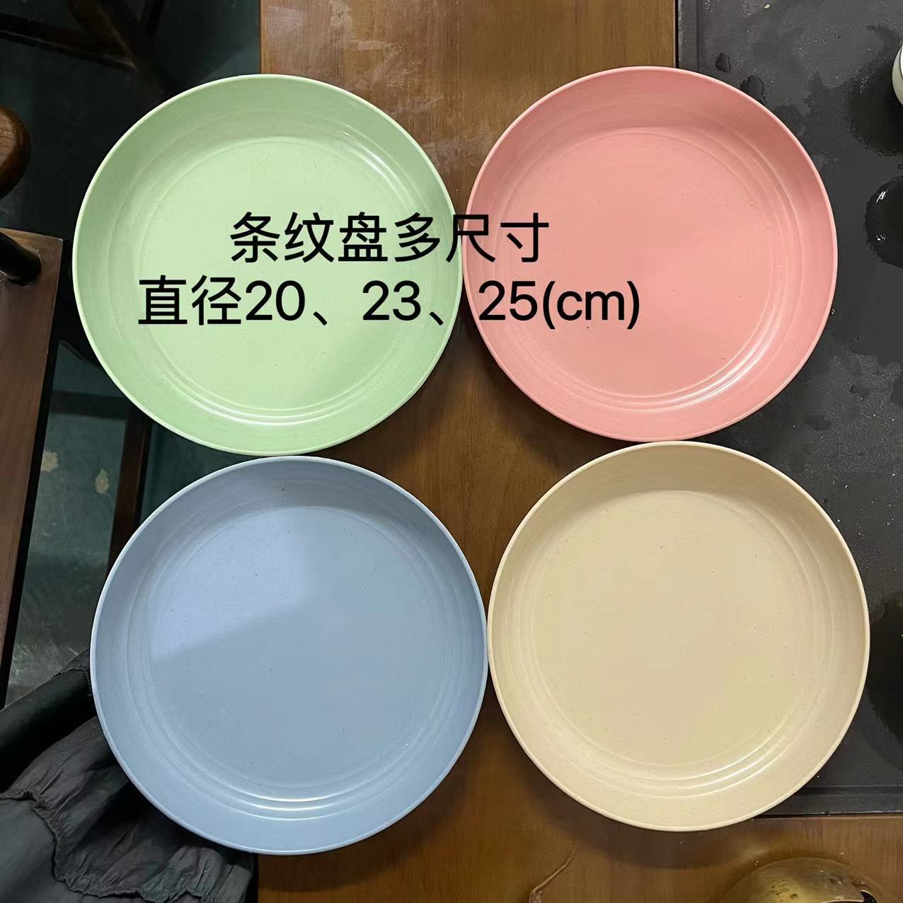 스트라이프 라운드 플레이트 식기 가정용 플라스틱 플레이트는 가을 방지 서양 푸드 플레이트를 청소하기 쉽습니다. 멀티 컬러 멀티 사이즈 접시 접시