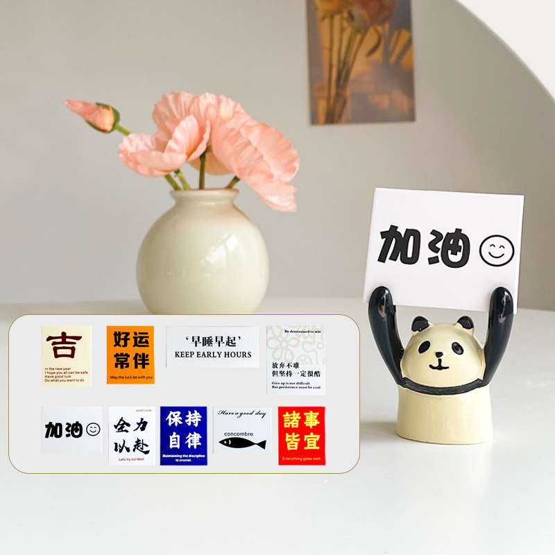 • 긍정적인 에너지 슈퍼 힐링 장식품 - 손을 들고 팬더 [무료 카드 9장]
