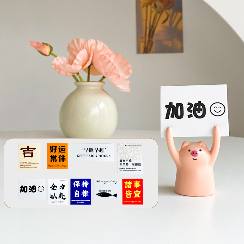 • 긍정적인 에너지 슈퍼 힐링 장식품 - 손을 들고 있는 돼지 [무료 카드 9장]