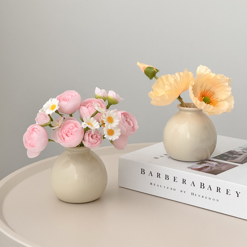 도매 세라믹 작은 꽃병 데스크탑 입구 현관 거실 장식 말린 꽃 가짜 꽃 장식품 드롭 배송